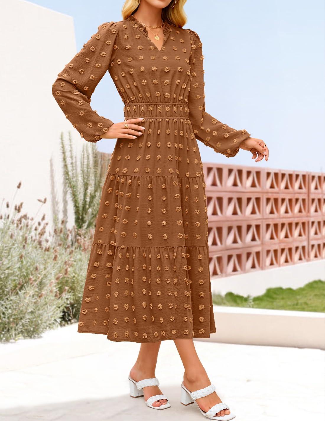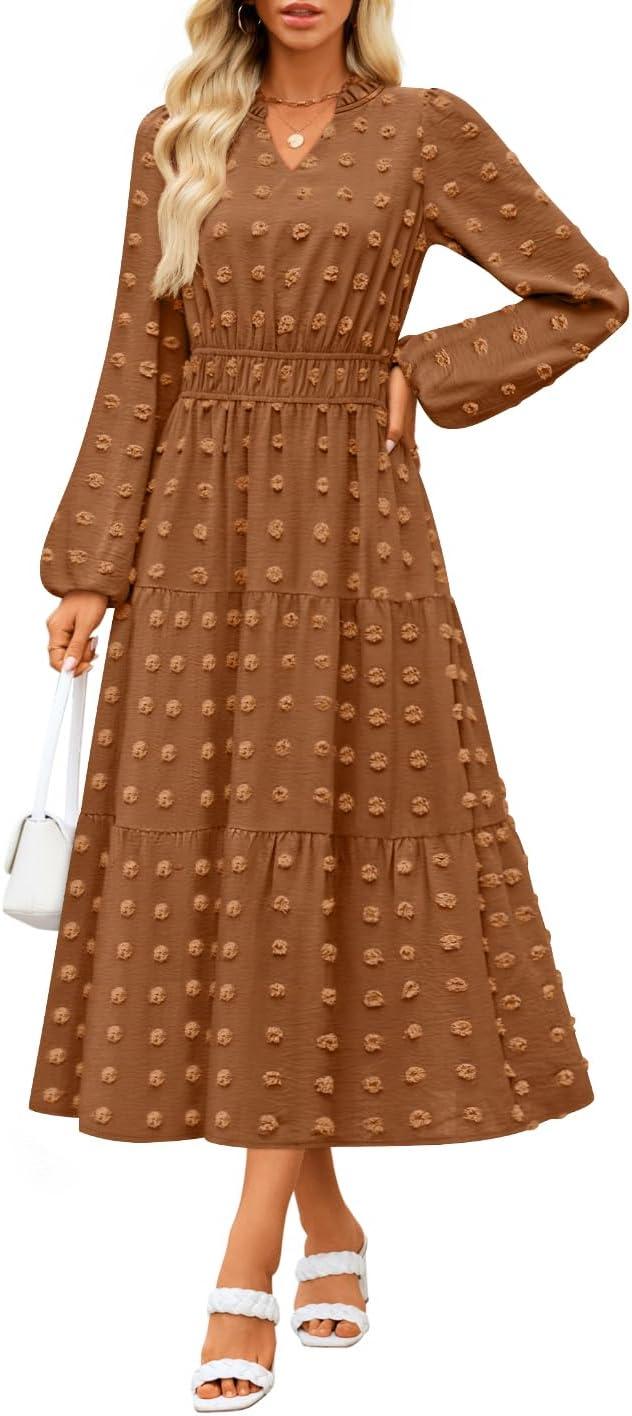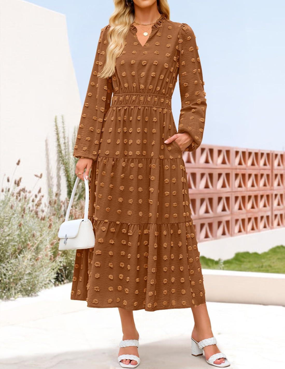 Score big savings on ZESICA Boho Fall Maxi Dresses for Women 2025 Dressy Casual Long Sleeve Swiss Dot Tiered Flowy Swing Wedding Guest Long Dress(Caramel) during our back-to-school sale. Limited quantities available.