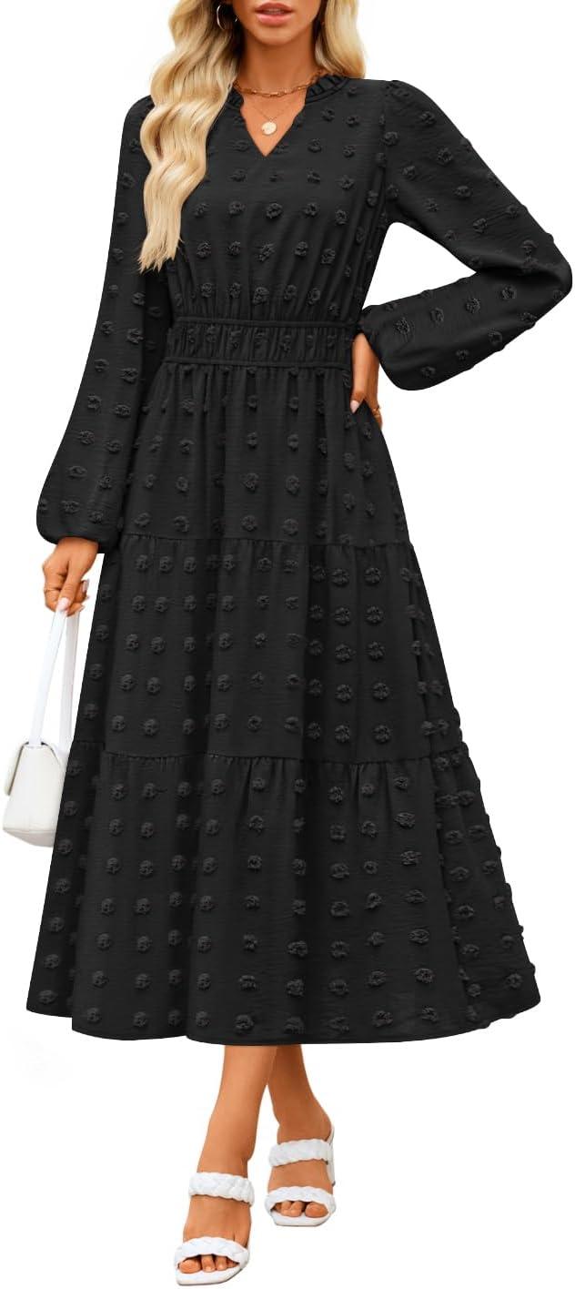 Get up to 50% off on ZESICA Boho Fall Maxi Dresses for Women 2025 Dressy Casual Long Sleeve Swiss Dot Tiered Flowy Swing Wedding Guest Long Dress(Darkblack) styles during our spring sale event.