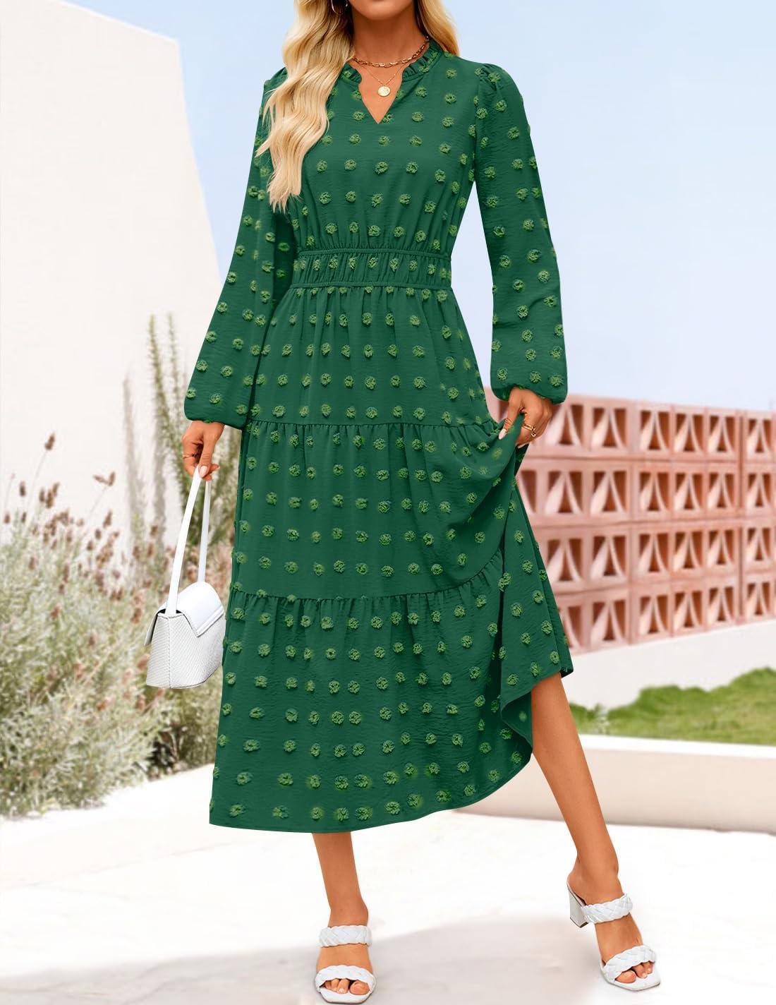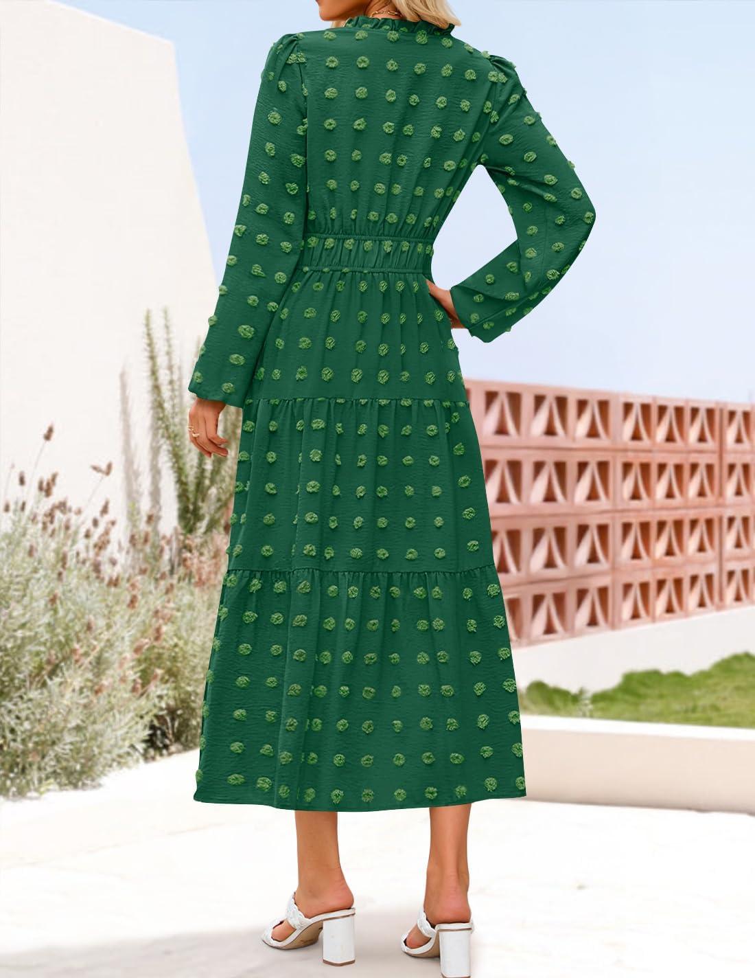 imageZESICA Boho Fall Maxi Dresses for Women 2025 Dressy Casual Long Sleeve Swiss Dot Tiered Flowy Swing Wedding Guest Long DressDarkgreen