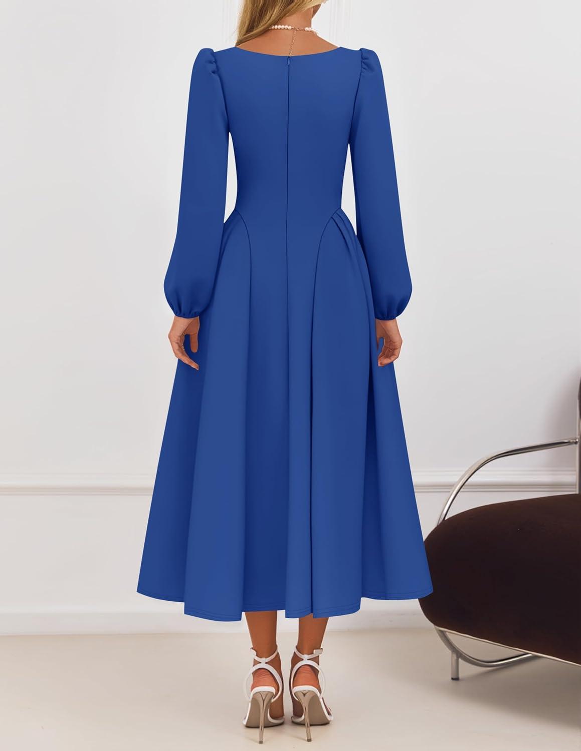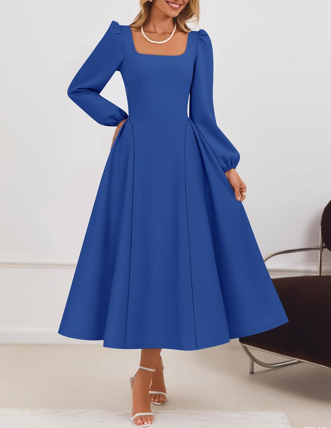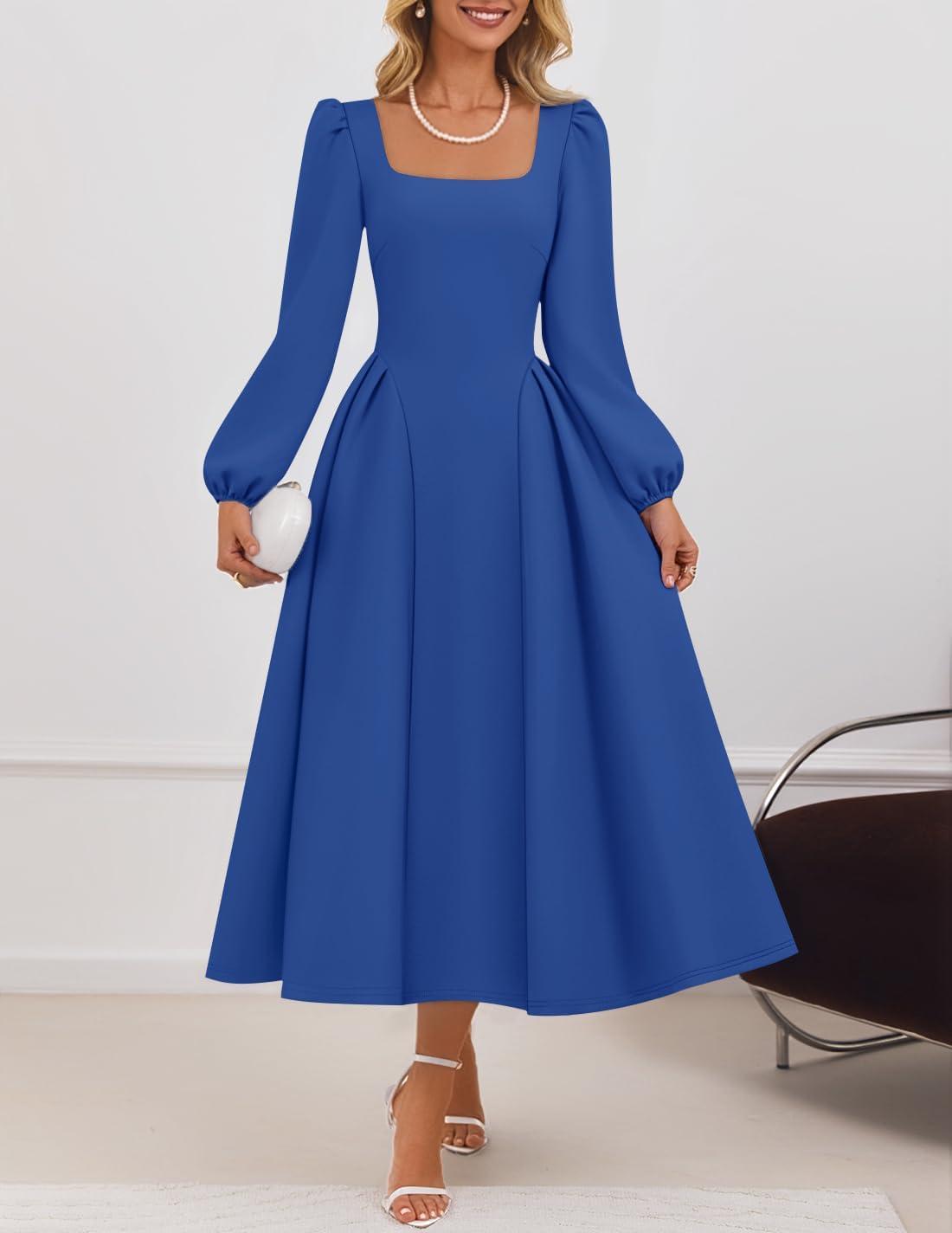 Get up to 50% off on ZESICA Fall Cocktail Dresses for Women Wedding Guest 2025 Elegant Long Sleeve Square Neck Swing Evening Prom Midi Dress(Darkblue) styles during our spring sale event.