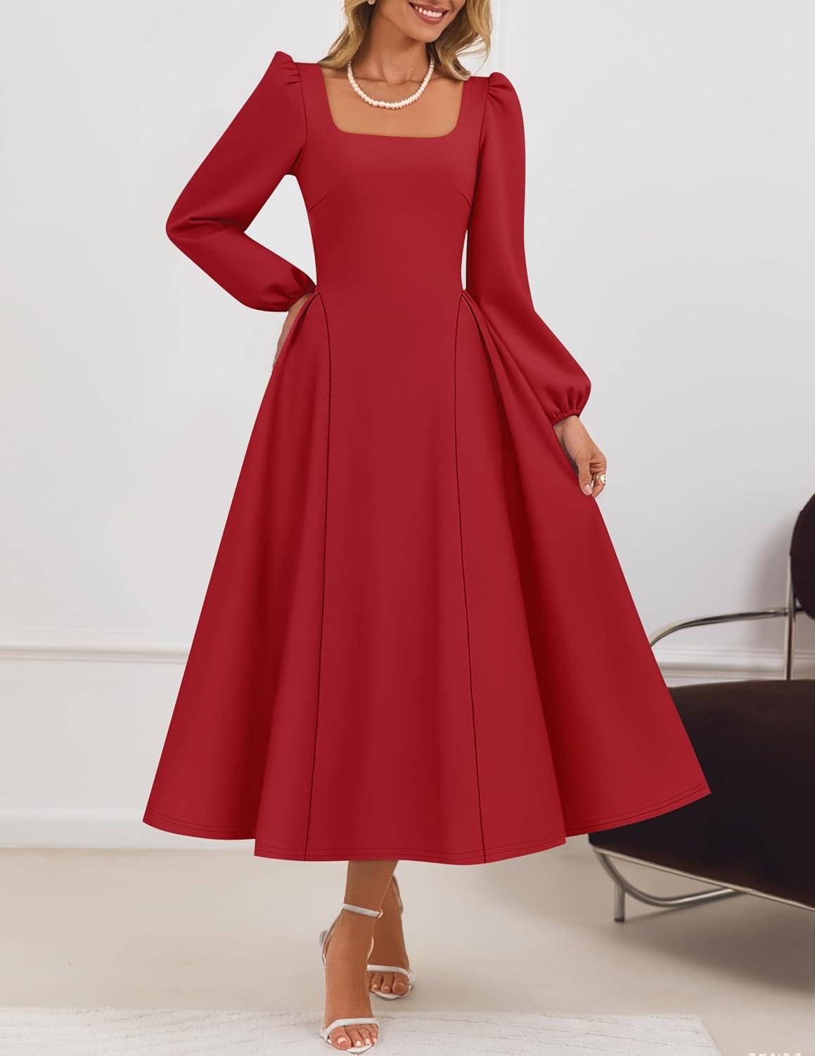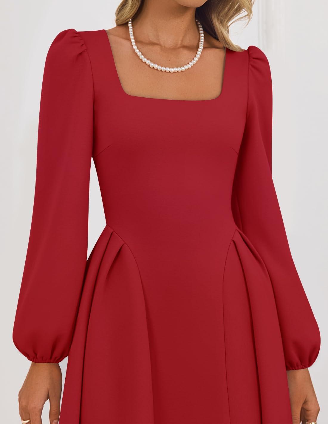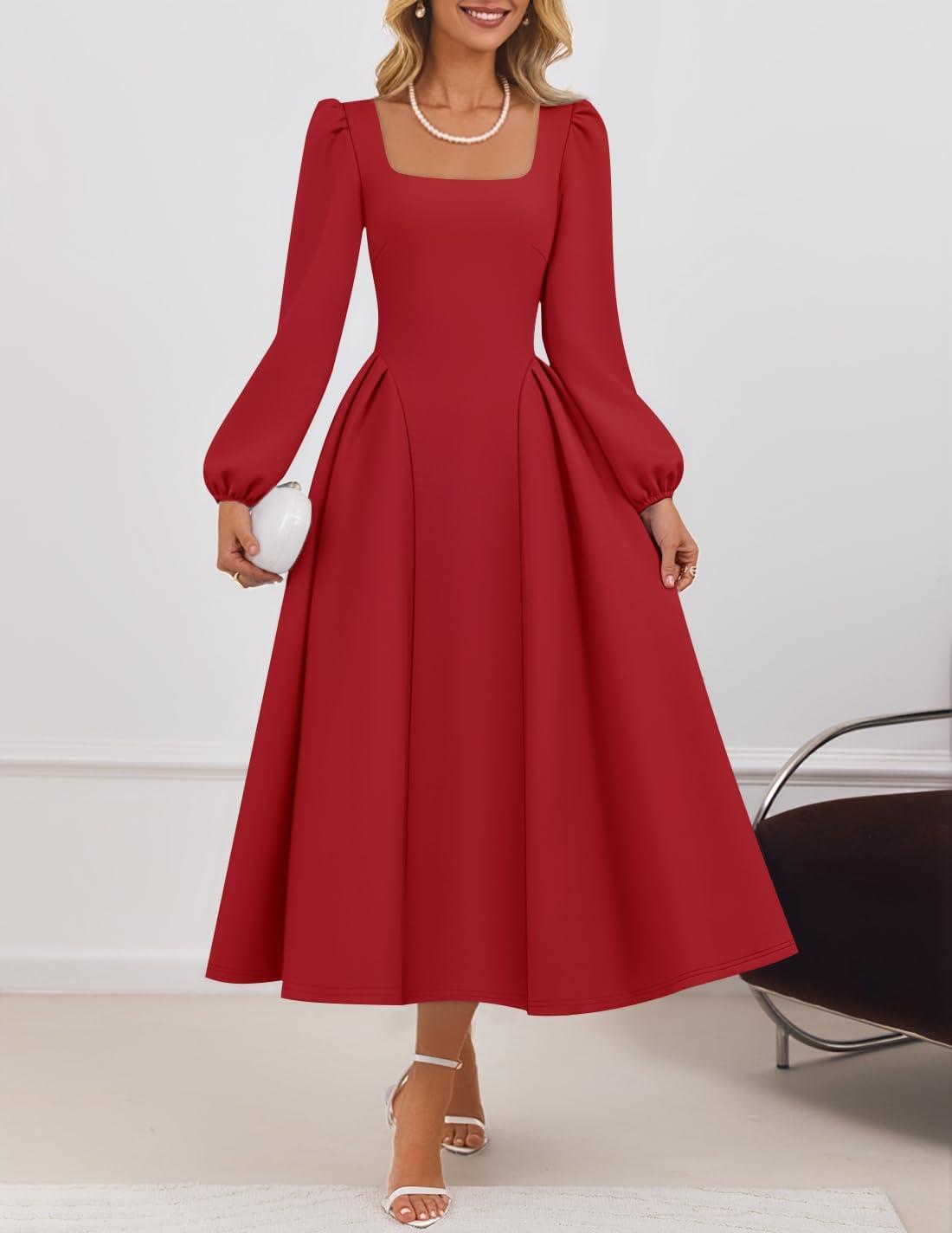 Save up to 40% on ZESICA Fall Cocktail Dresses for Women Wedding Guest 2025 Elegant Long Sleeve Square Neck Swing Evening Prom Midi Dress(Red) styles during our end-of-season sale.