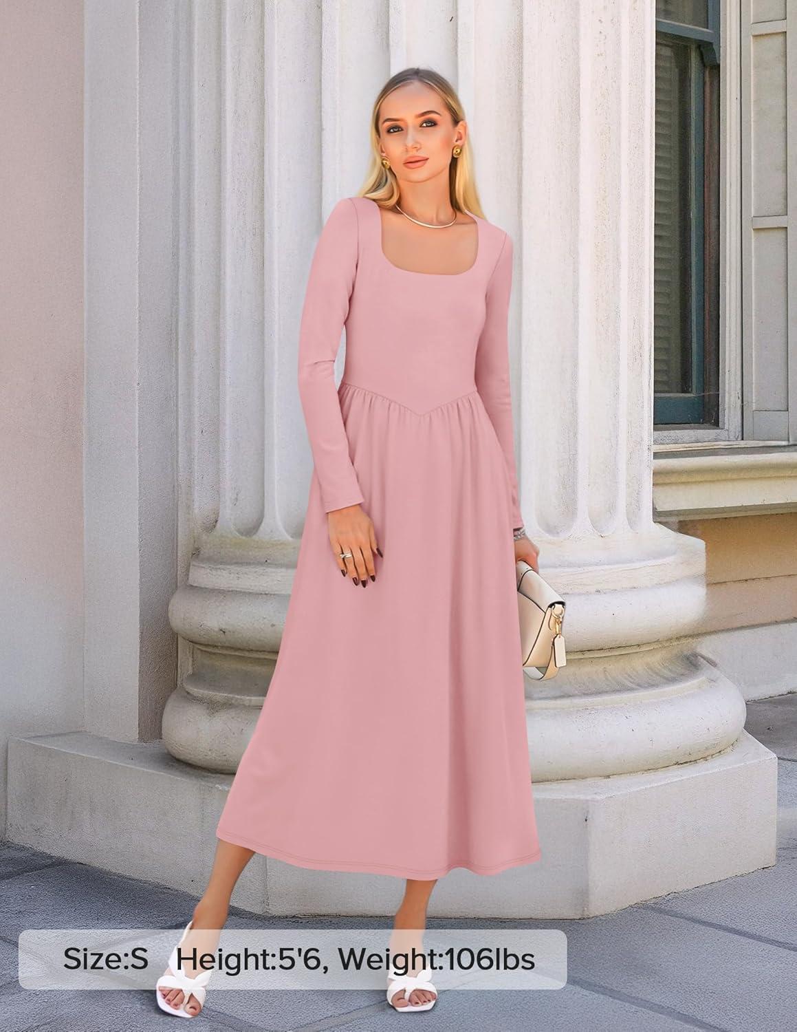 Be the first to review “ZESICA Fall Dresses for Women 2025 Elegant Classy Square Neck Long Sleeve Flowy Wedding Guest Party Midi Dress(Pink)”