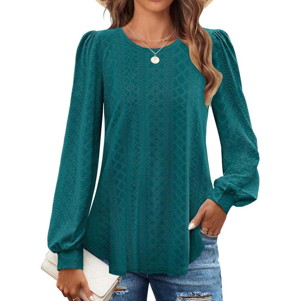 Get the ZESICA Long Sleeve Eyelet Tops for Womens Crew Neck Fall Shirts Casual Loose Blouses 2024 Trendy Clothes(Tealgreen) you want at a price you can afford with our markdown sale.