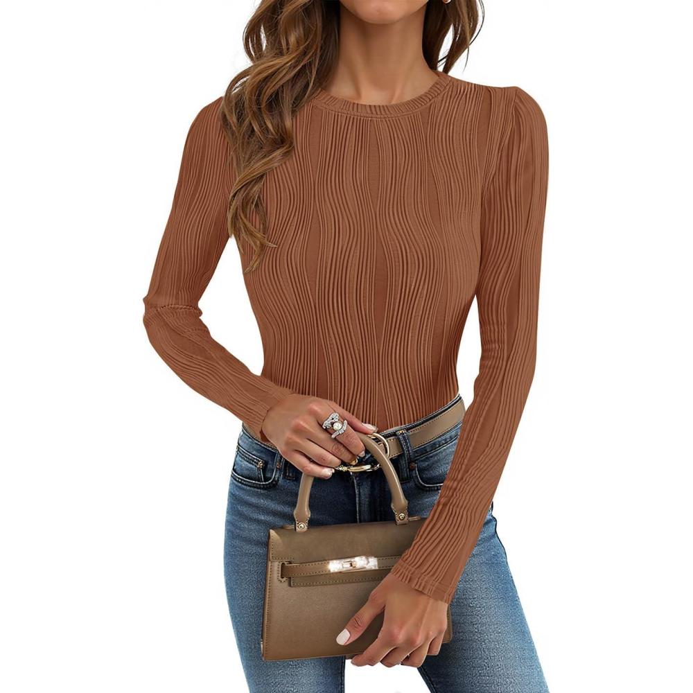 Don’t wait, get up to 50% off on ZESICA Long Sleeve Shirts for Women Tops 2025 Fall Fashion Trendy Slim fit Textured Tshirts(Brown) during our end-of-season sale event.