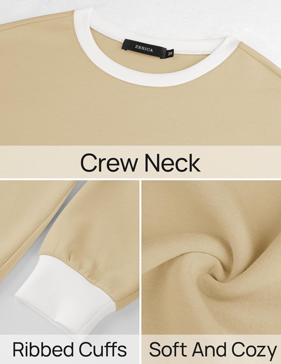 imageZESICA Sweatshirts for Women Casual Long Sleeve Crewneck Contrast Color Oversized Pullover Tops Trendy ClothesApricot