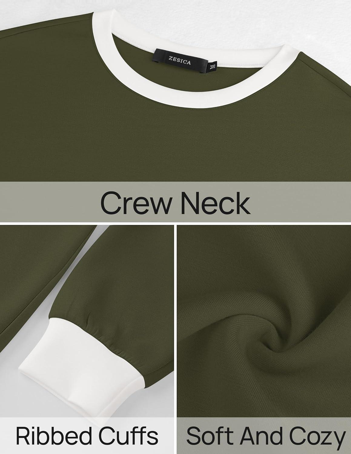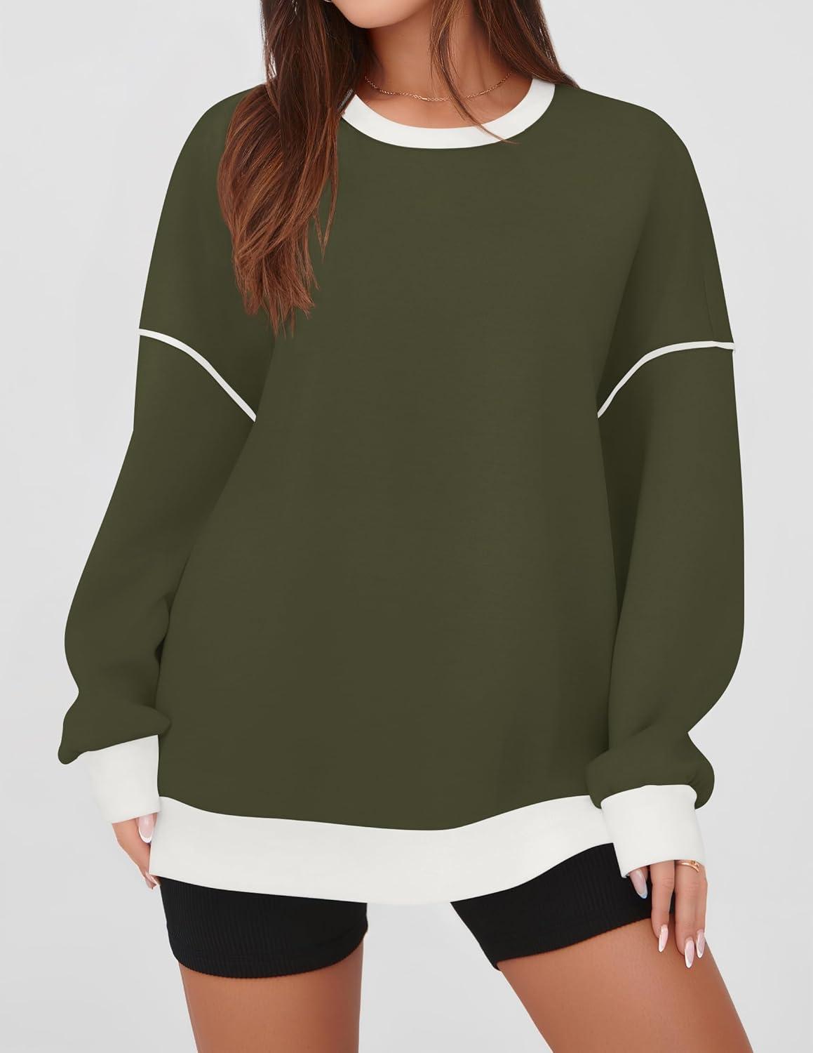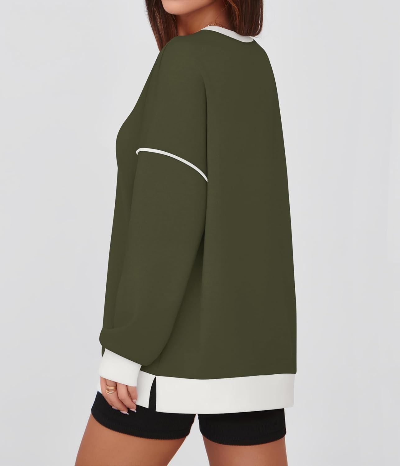 imageZESICA Sweatshirts for Women Casual Long Sleeve Crewneck Contrast Color Oversized Pullover Tops Trendy ClothesArmy Green
