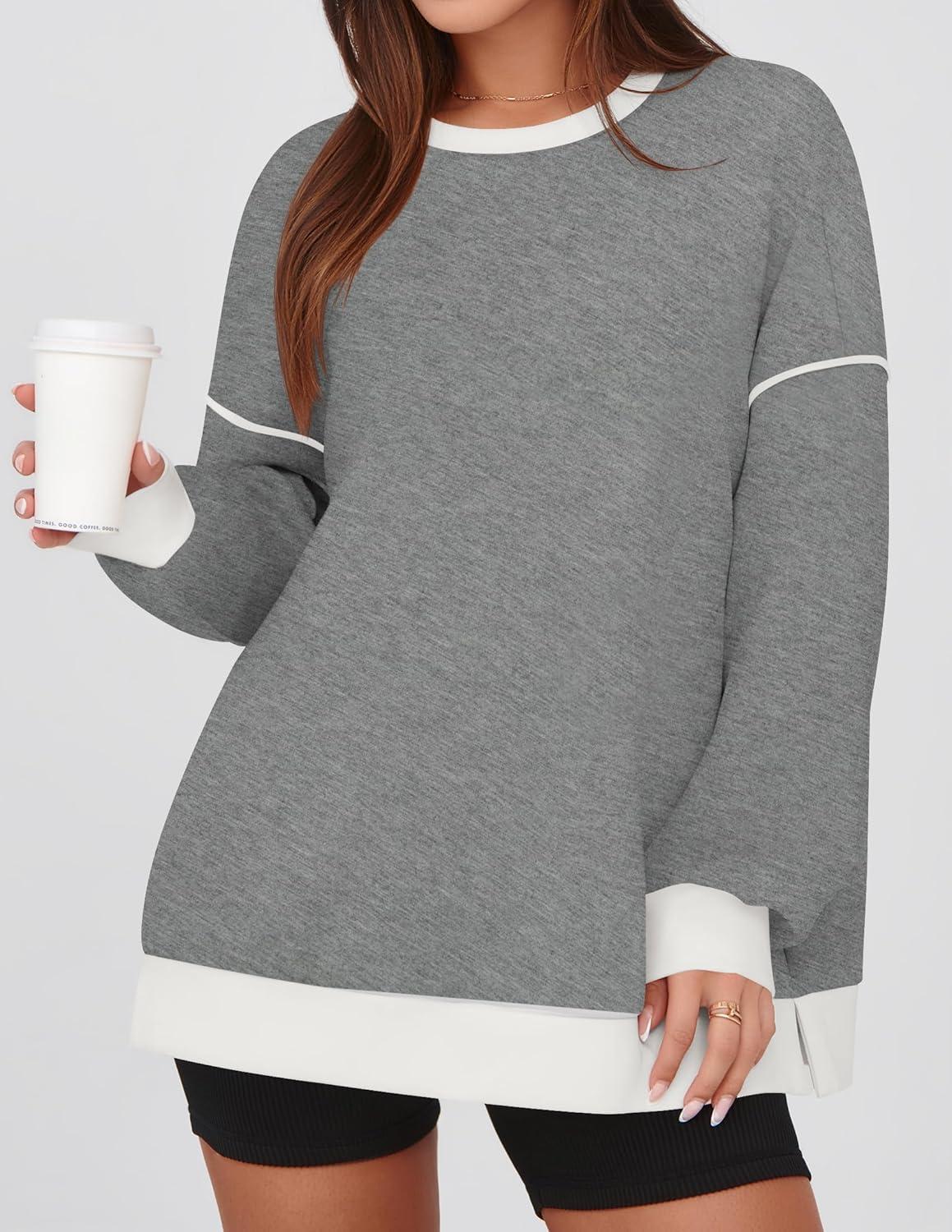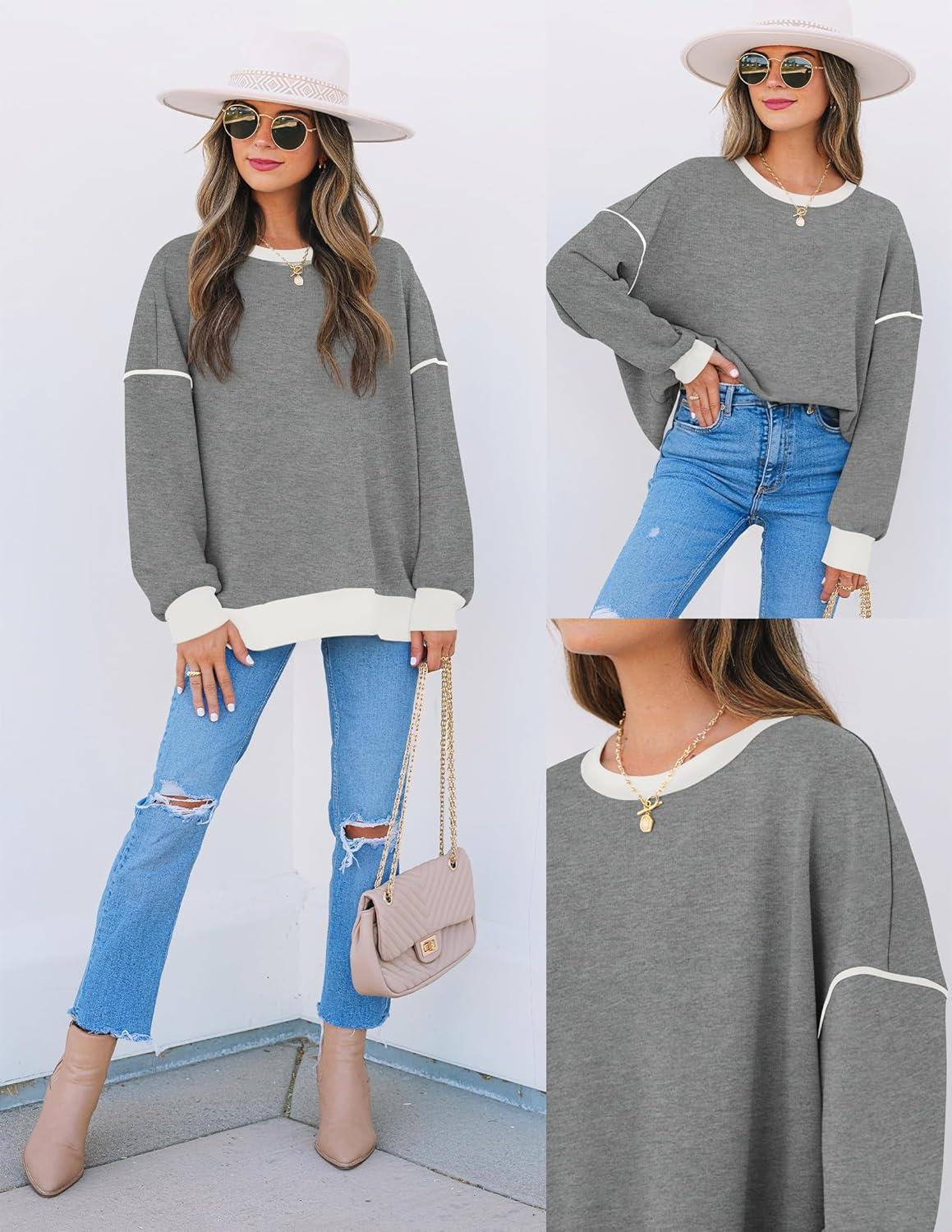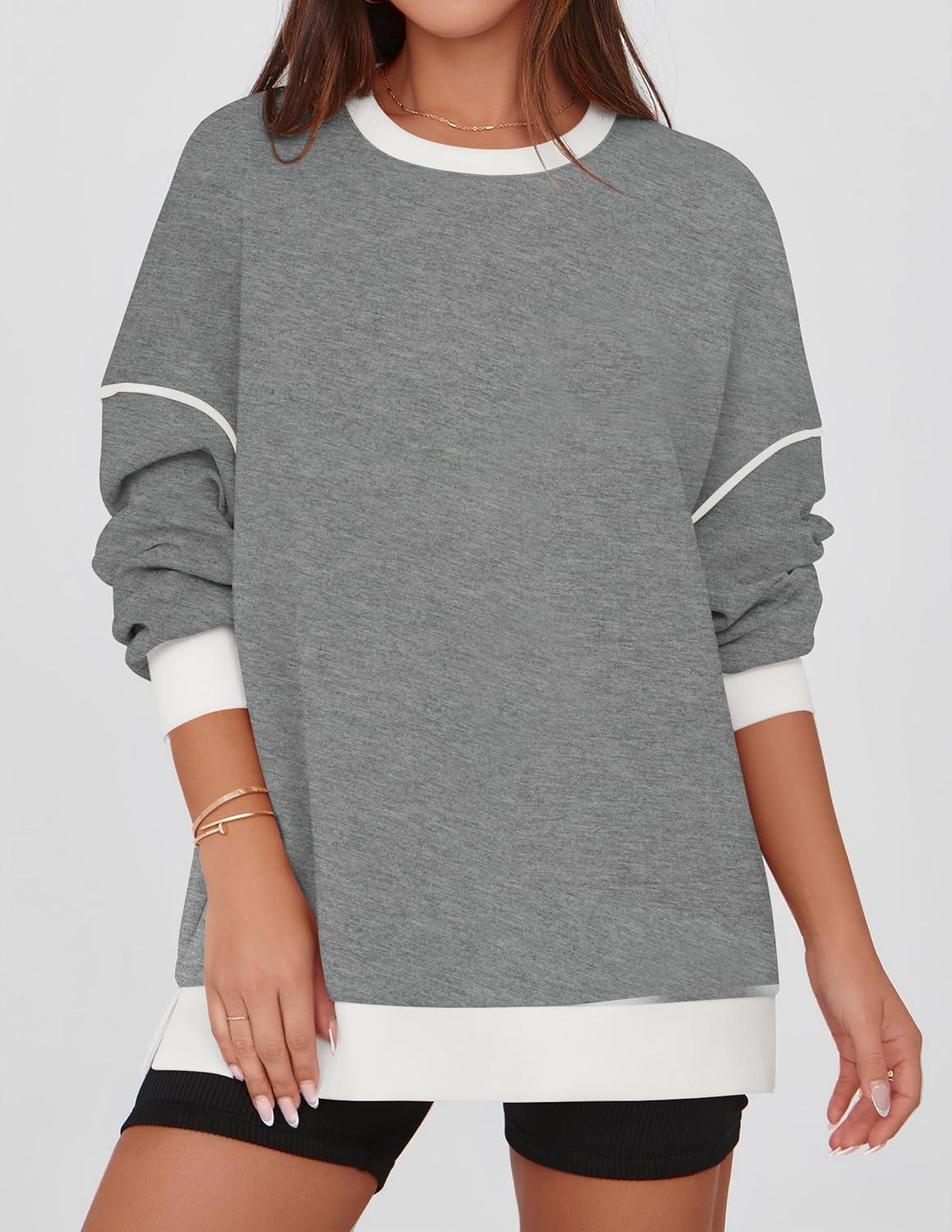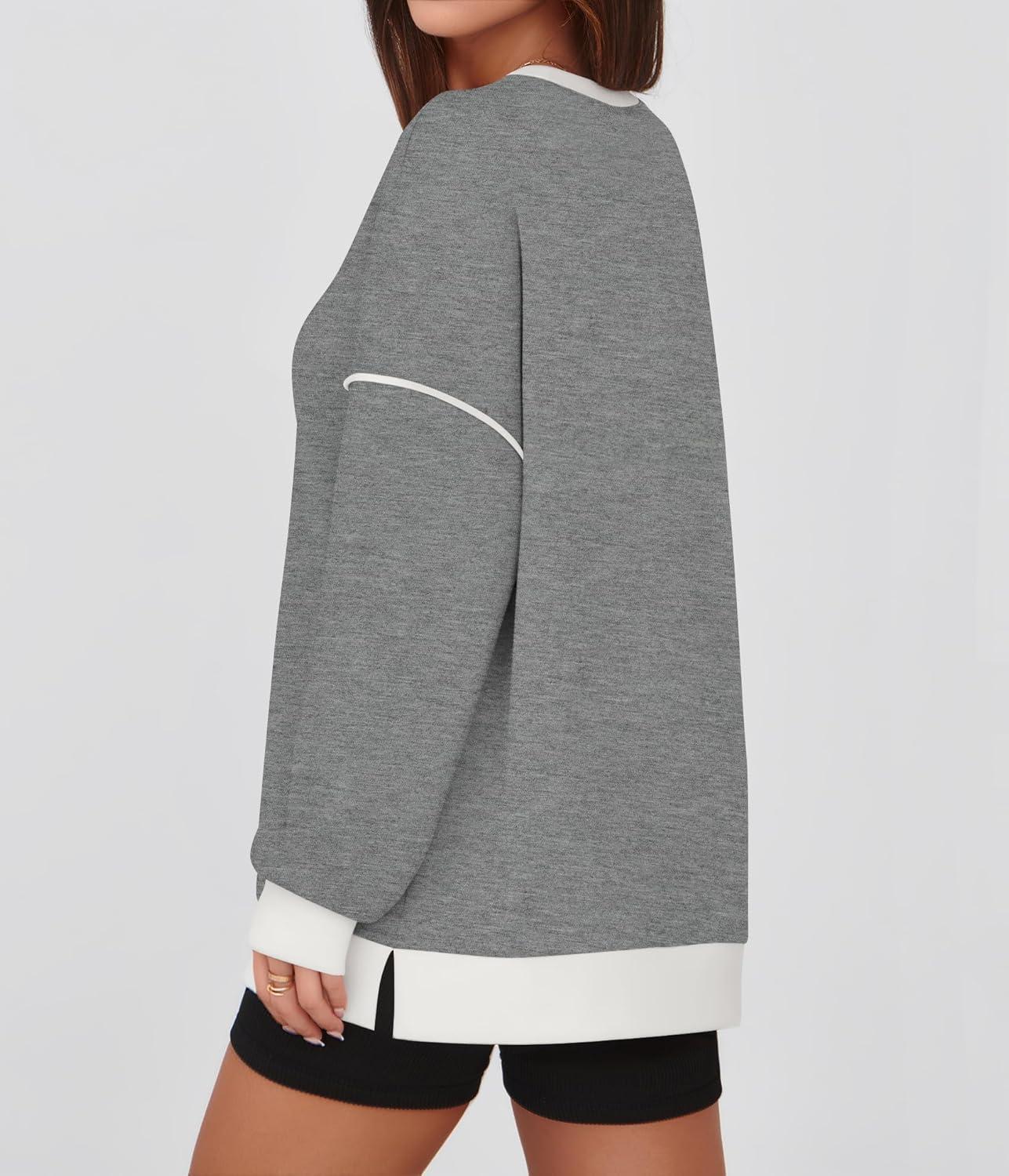 ZESICA Sweatshirts for Women Casual Long Sleeve Crewneck Contrast Color Oversized Pullover Tops Trendy Clothes(Grey)