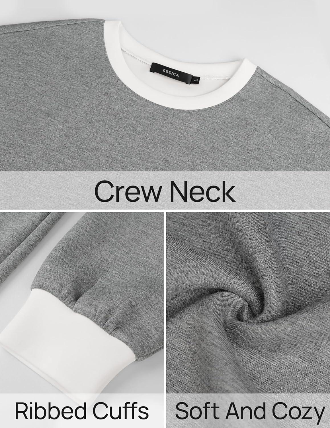 imageZESICA Sweatshirts for Women Casual Long Sleeve Crewneck Contrast Color Oversized Pullover Tops Trendy ClothesGrey