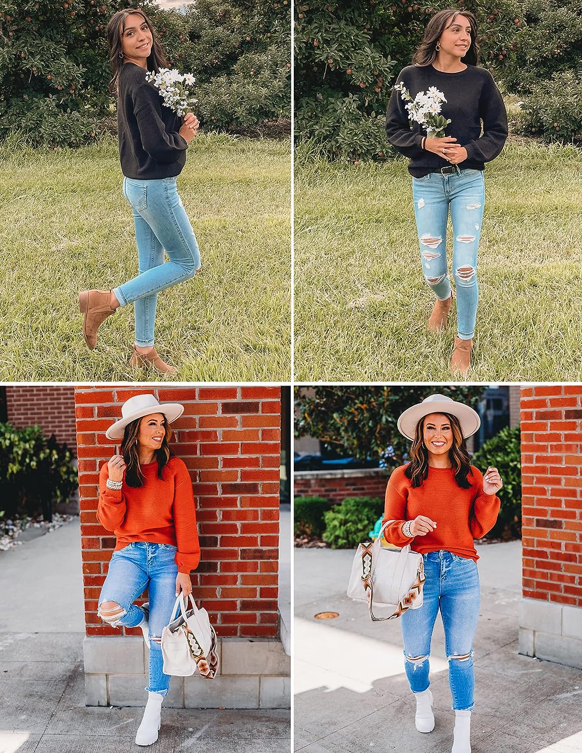 Unique design: Boat neck, solid color, drop shoulder,lantern sleeve ,chic neck and hem, comfy knit pullover sweater,chic and fashion.