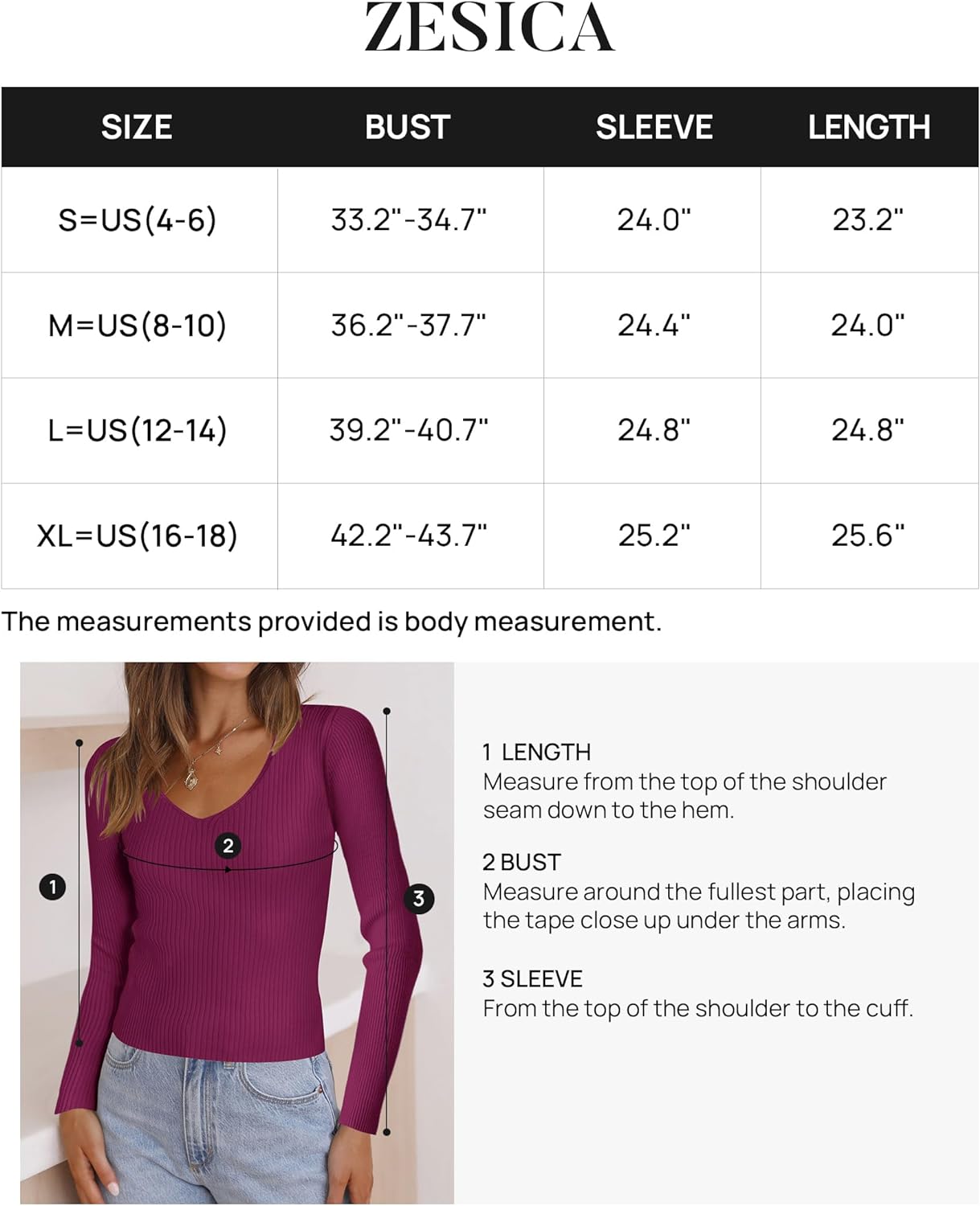 Be the first to review “ZESICA Women’s 2024 Fall Long Sleeve V Neck T Shirts Ribbed Knit Sweater Slim Fit Solid Basic Casual Tee Tops(Eggplant)”