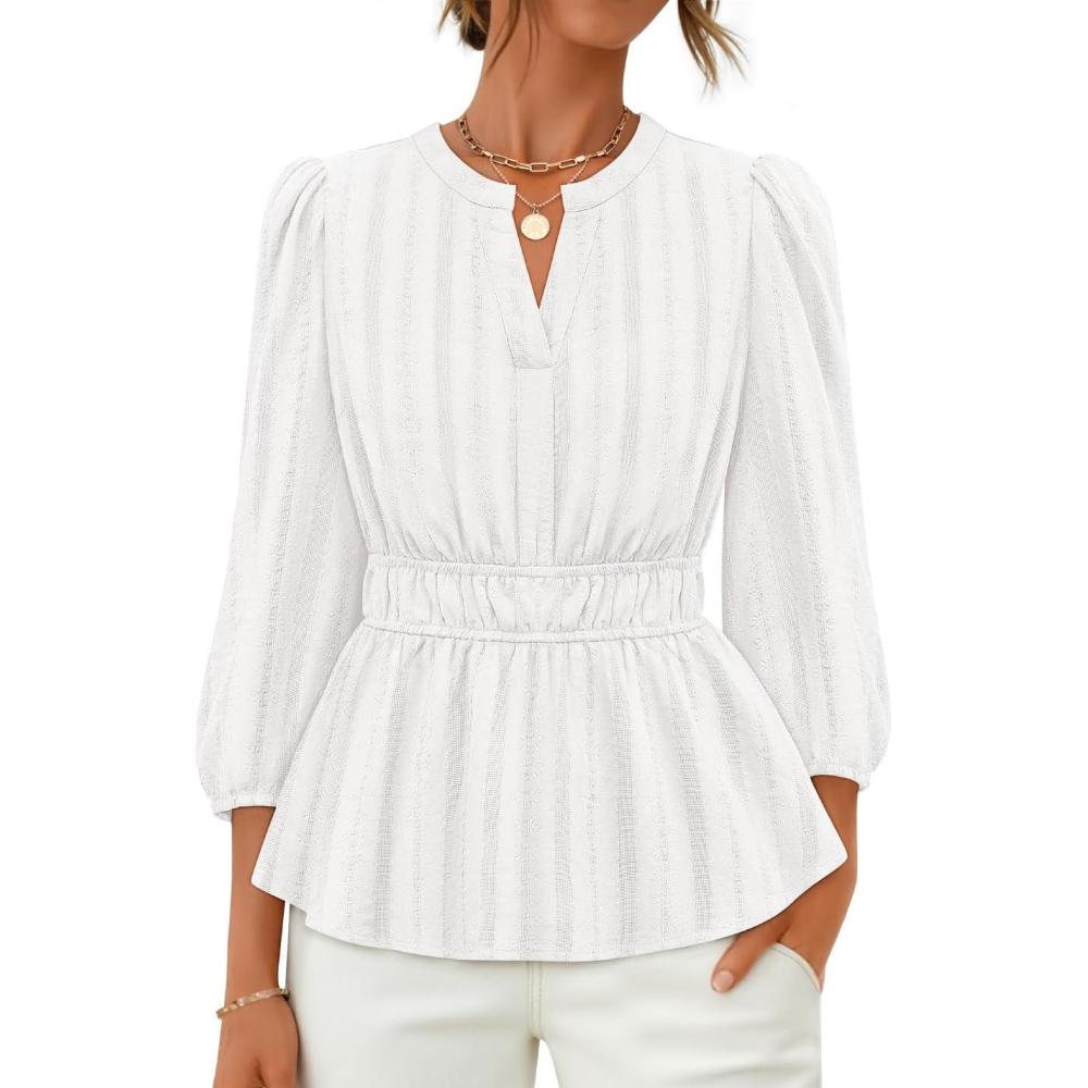 Get up to 60% off on ZESICA Women’s 2025 Fall Babydoll Peplum Tops V Neck Puff 3/4 Length Sleeve Shirts Dressy Casual Blouses(White) styles during our winter sale event.