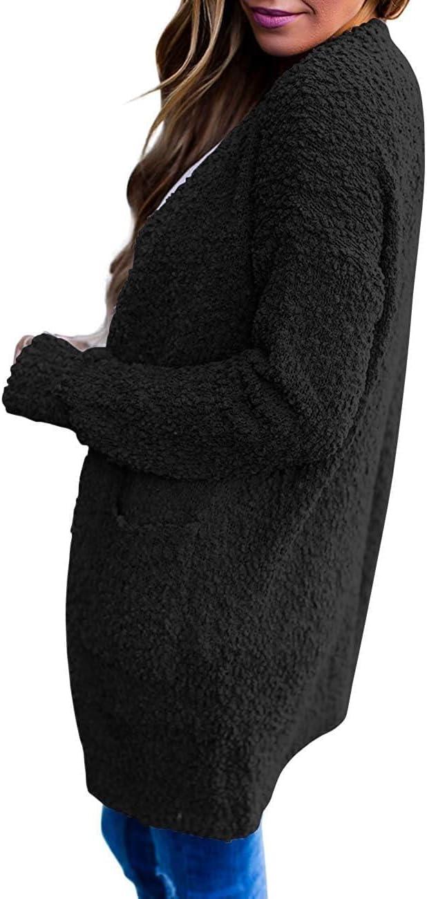 ZESICA Women’s 2025 Fall Casual Long Sleeve Open Front Soft Chunky Knit Sweater Cardigan Outerwear(Black)