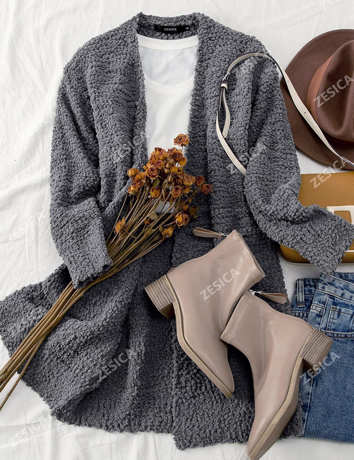 ZESICA Women's 2025 Fall Casual Long Sleeve Open Front Soft Chunky Knit Sweater Cardigan Outerwear(Charcoal)