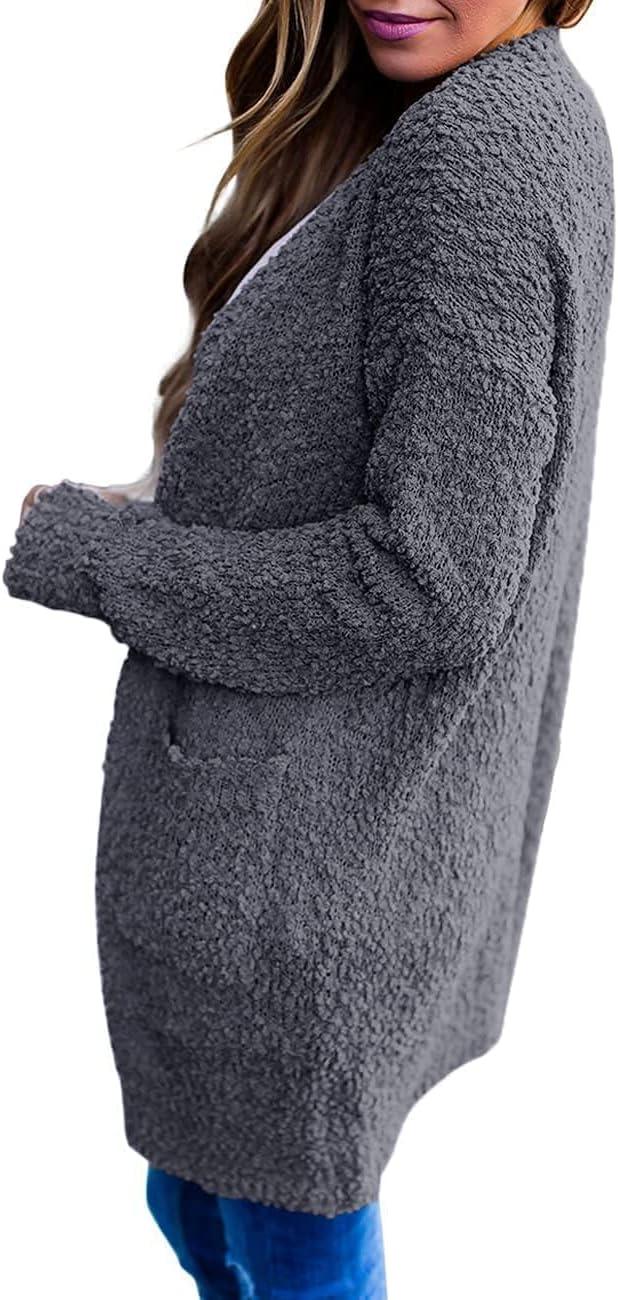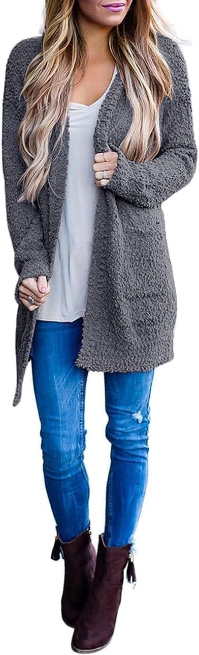 ZESICA Women’s 2025 Fall Casual Long Sleeve Open Front Soft Chunky Knit Sweater Cardigan Outerwear(Charcoal)