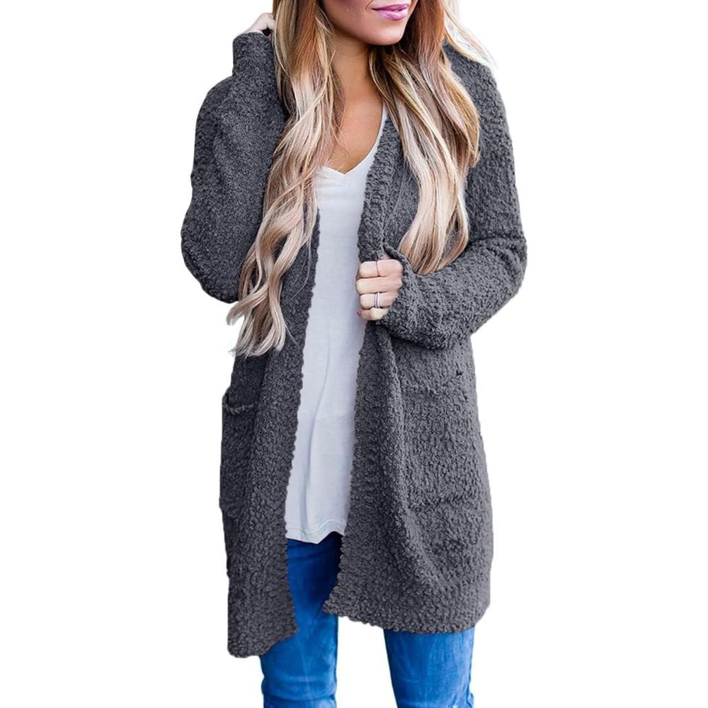 imageZESICA Womens 2025 Fall Casual Long Sleeve Open Front Soft Chunky Knit Sweater Cardigan OuterwearCharcoal