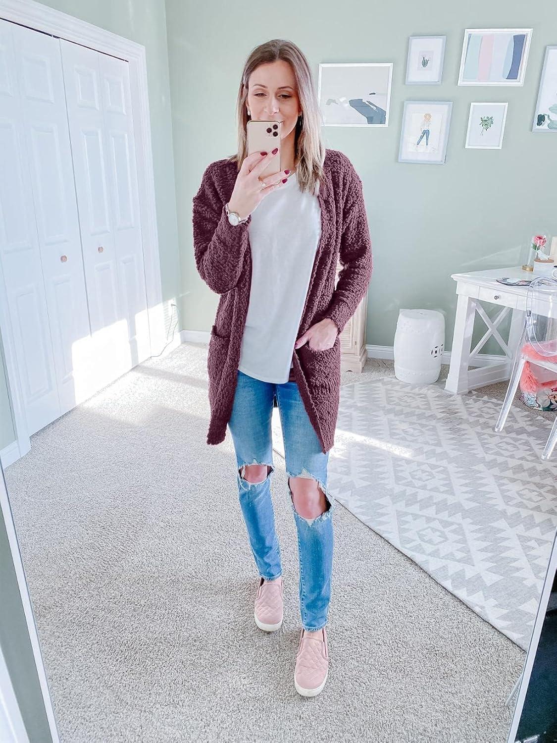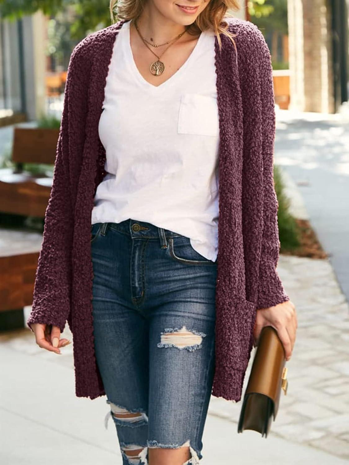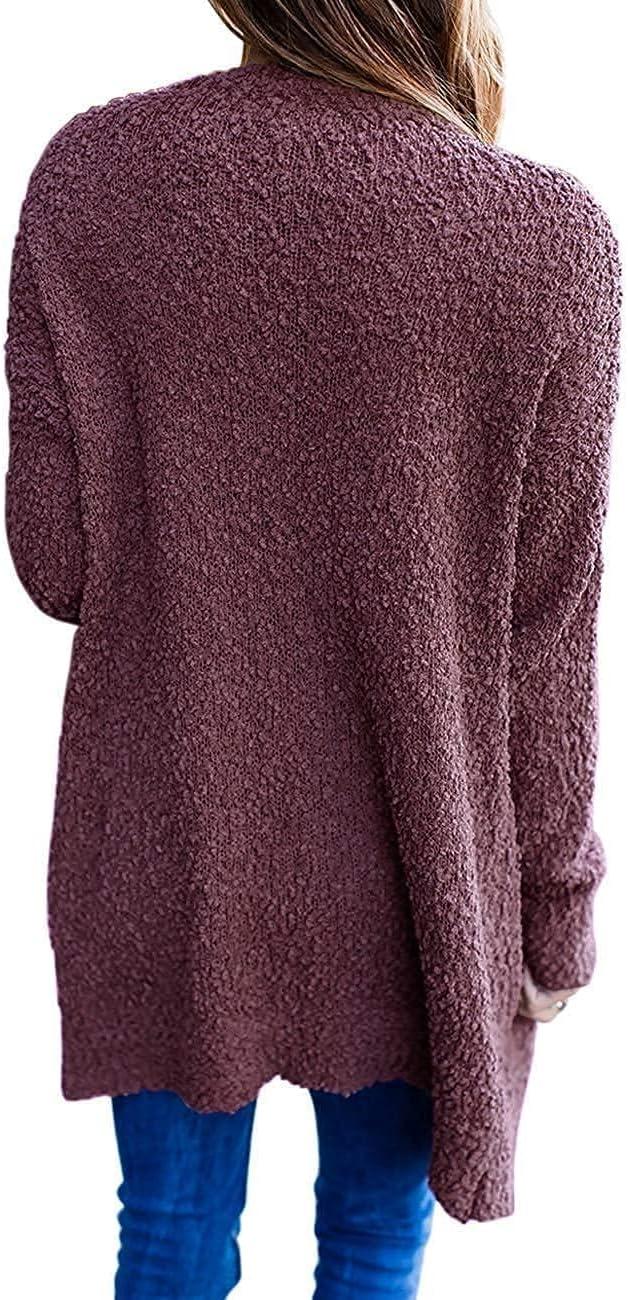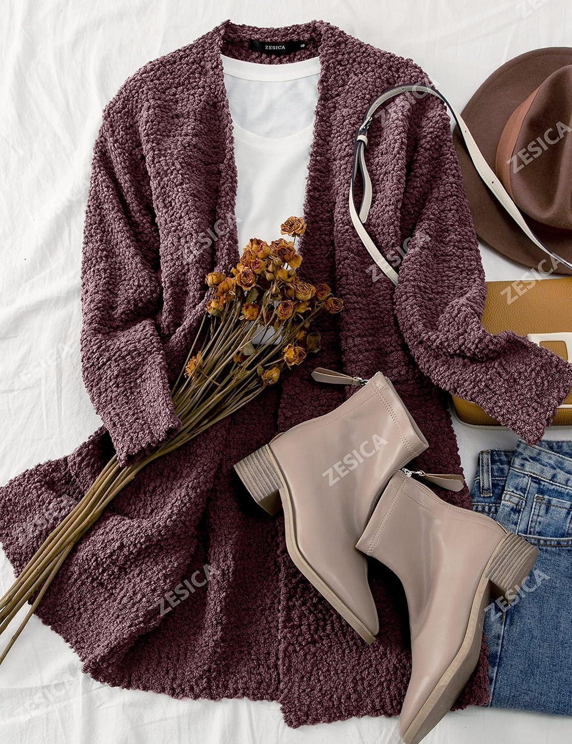 imageZESICA Womens 2025 Fall Casual Long Sleeve Open Front Soft Chunky Knit Sweater Cardigan OuterwearMaroon