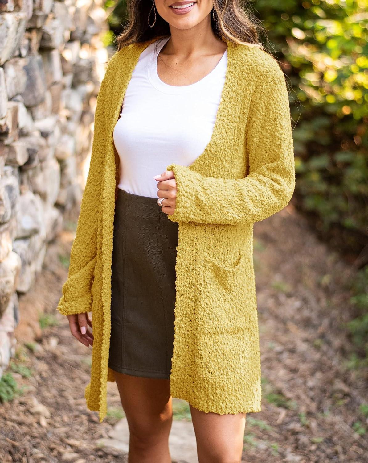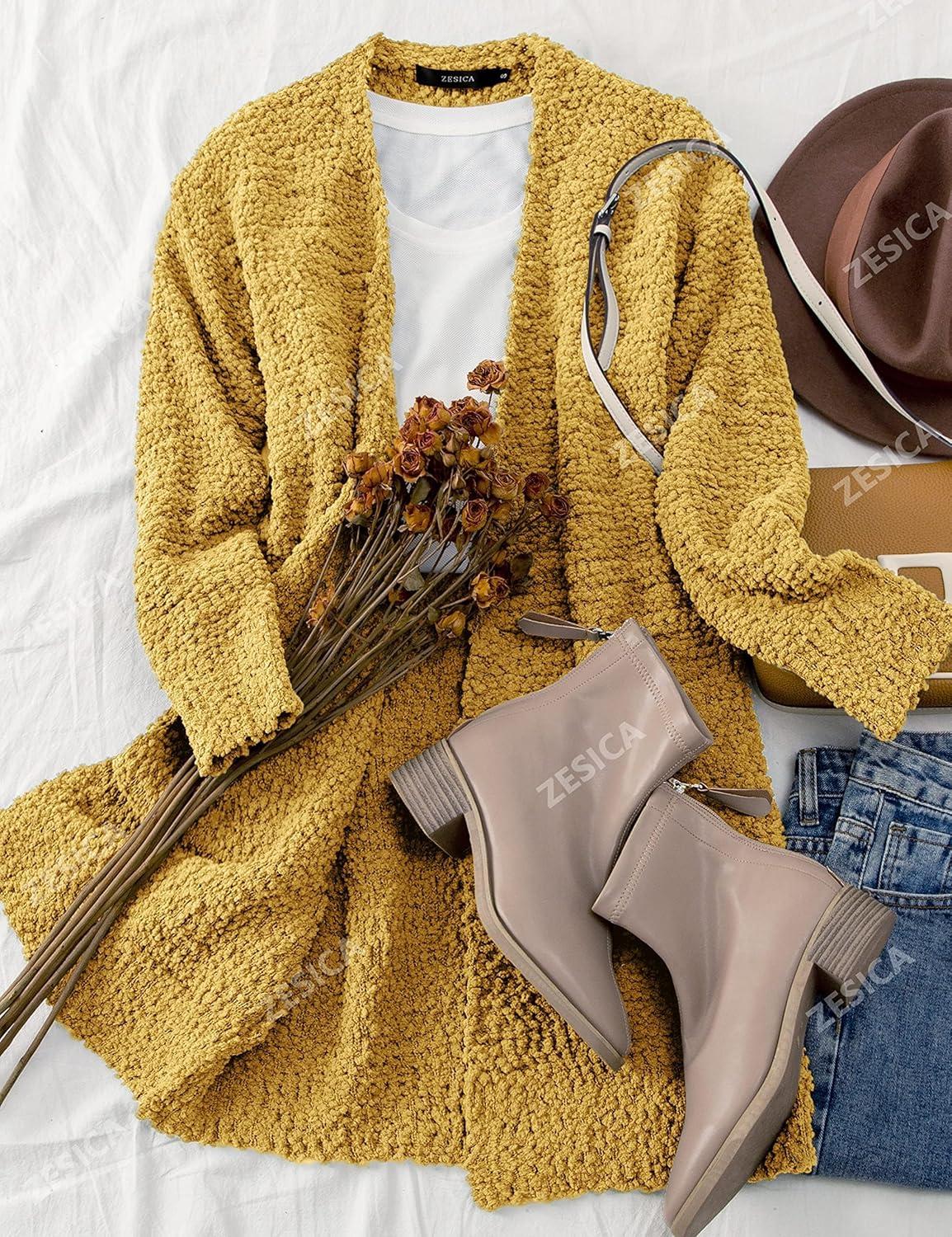 ZESICA Women’s 2025 Fall Casual Long Sleeve Open Front Soft Chunky Knit Sweater Cardigan Outerwear(Mustard Yellow)