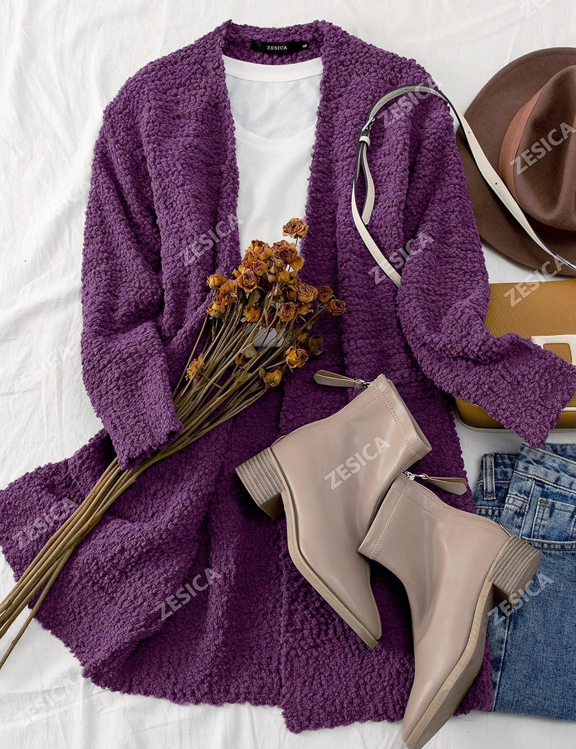 ZESICA Women’s 2025 Fall Casual Long Sleeve Open Front Soft Chunky Knit Sweater Cardigan Outerwear(Taro)