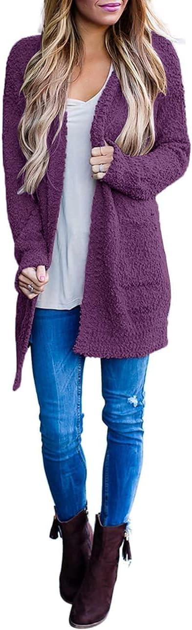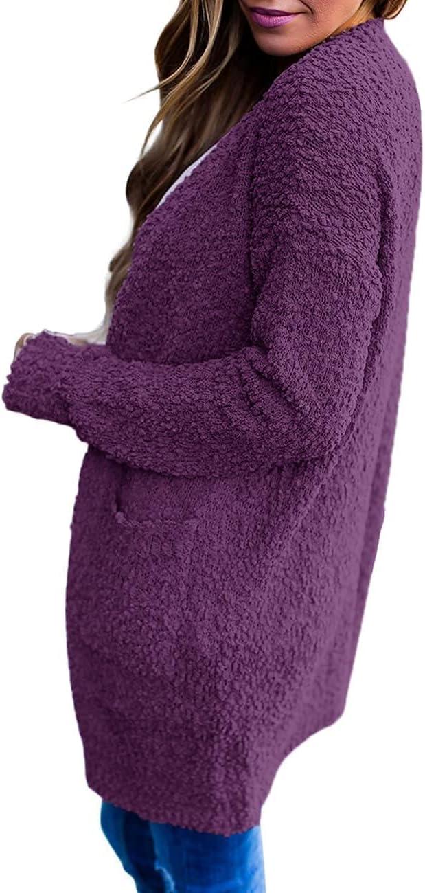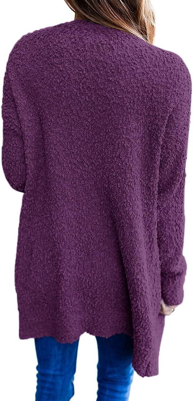 ZESICA Women’s 2025 Fall Casual Long Sleeve Open Front Soft Chunky Knit Sweater Cardigan Outerwear(Plum)