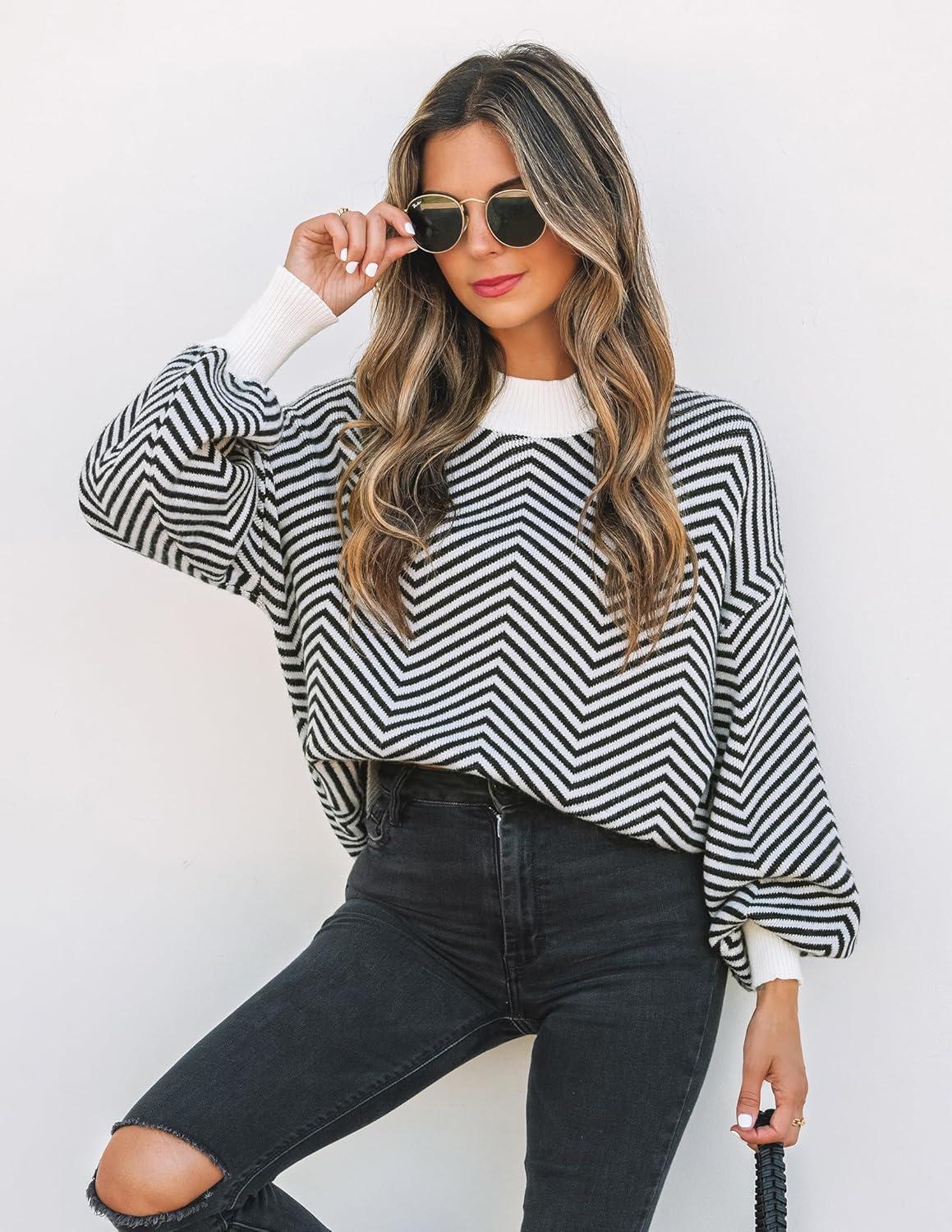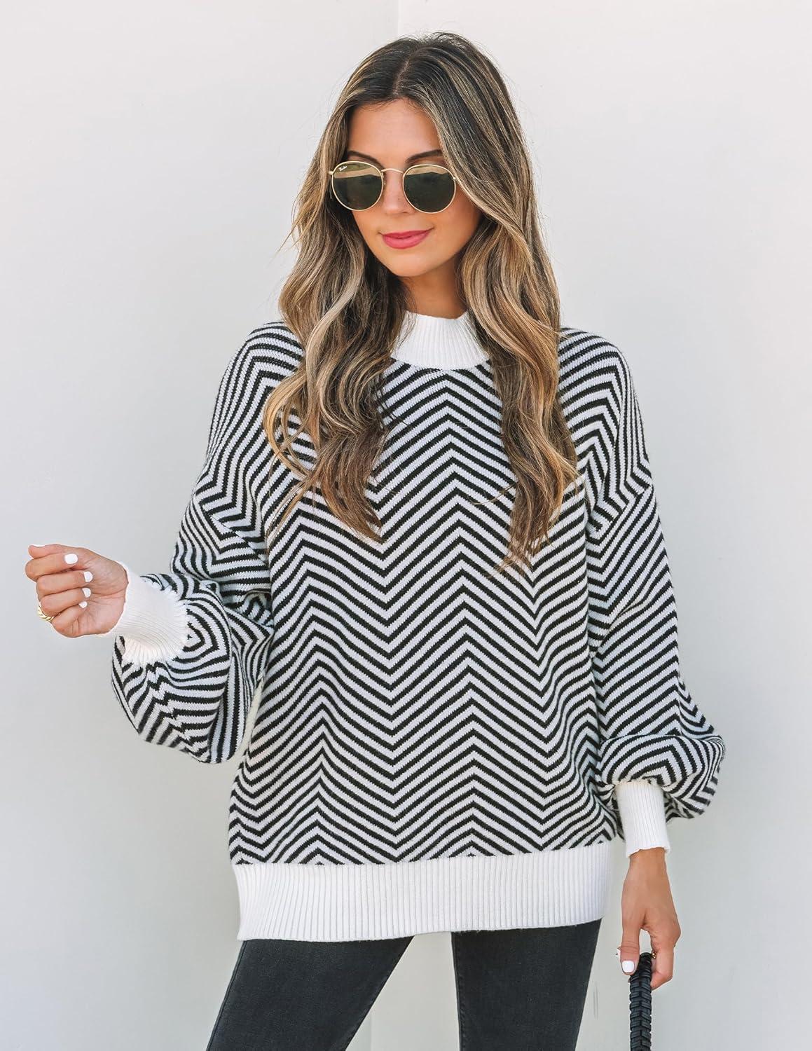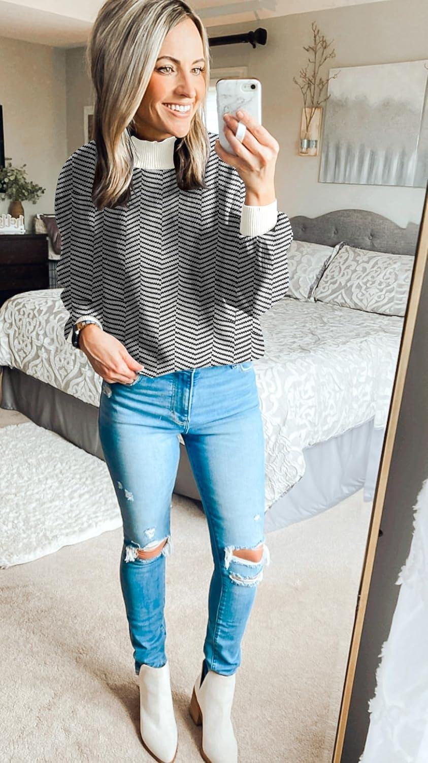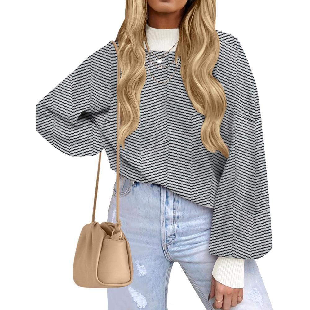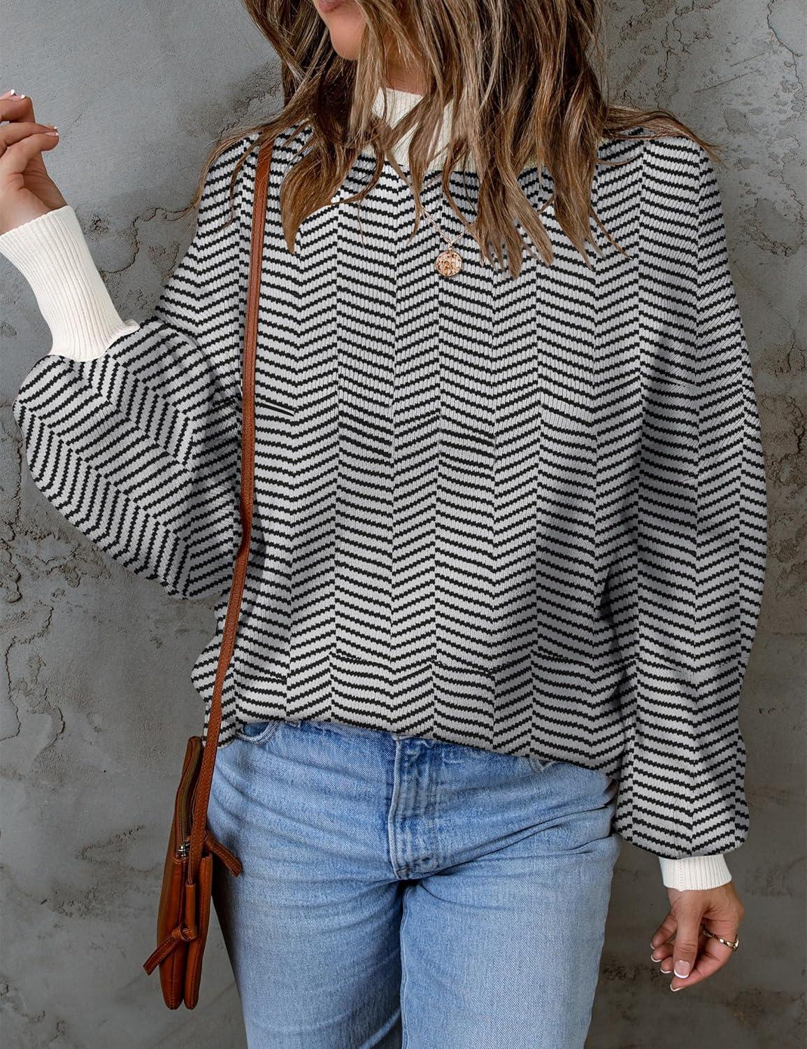 ZESICA Women’s 2025 Fall Fashion Turtleneck Long Sleeve Striped Ribbed Knit Loose Pullover Sweater Tops(Dim)