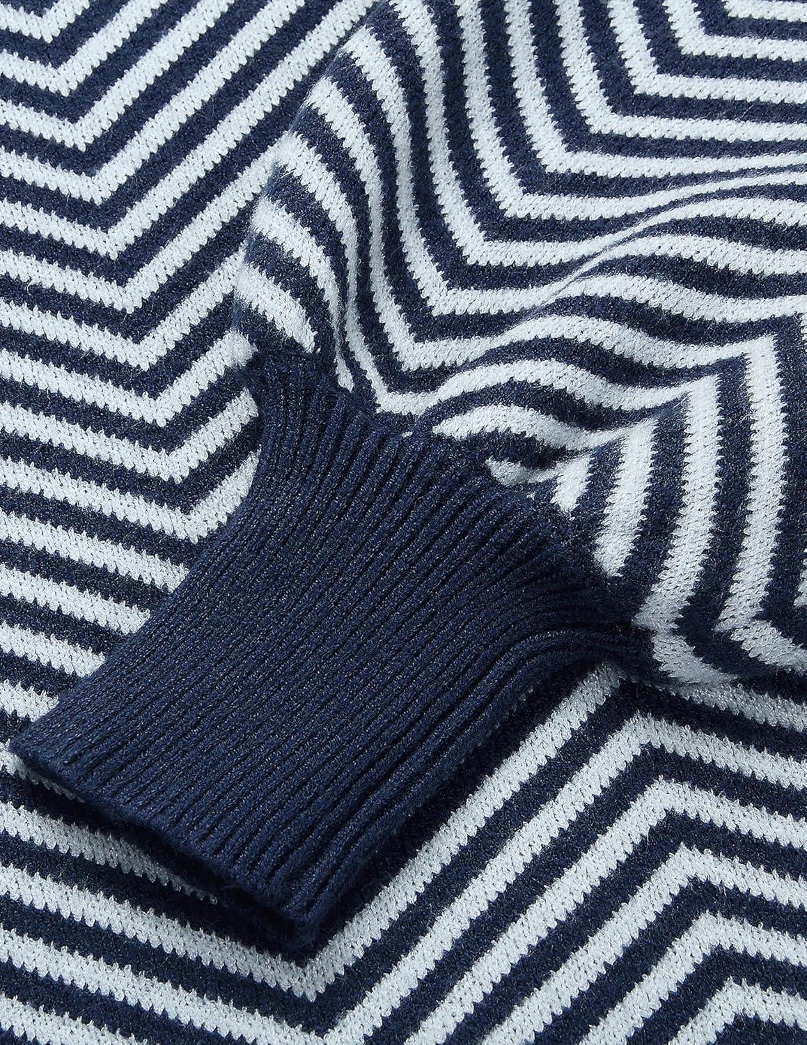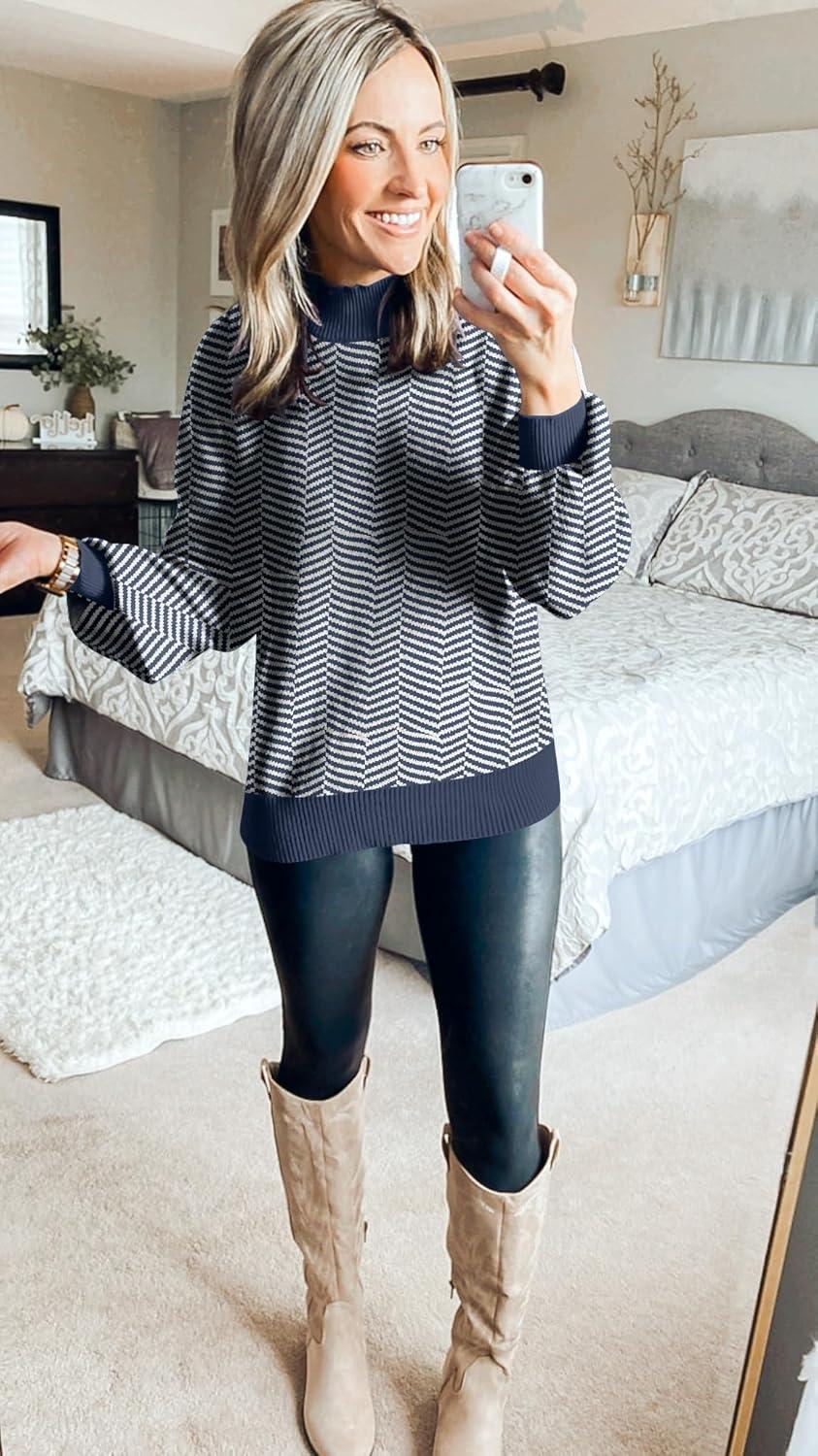 ZESICA Women’s 2025 Fall Fashion Turtleneck Long Sleeve Striped Ribbed Knit Loose Pullover Sweater Tops(Navystripe)