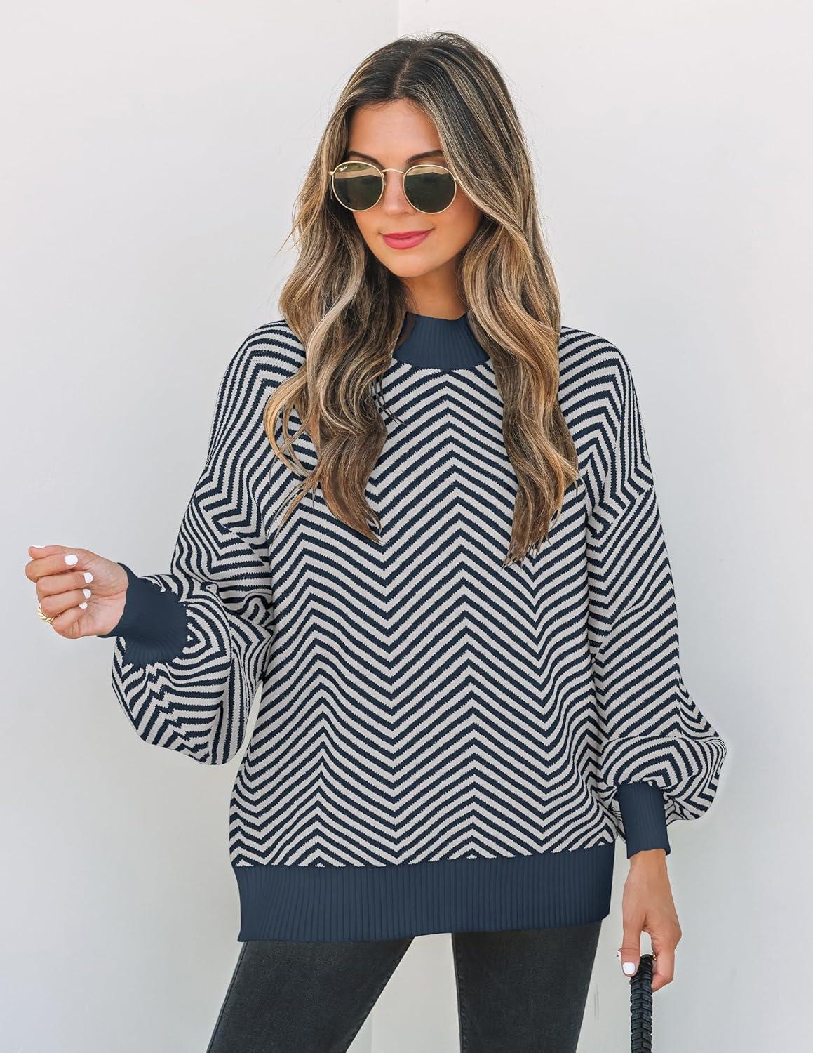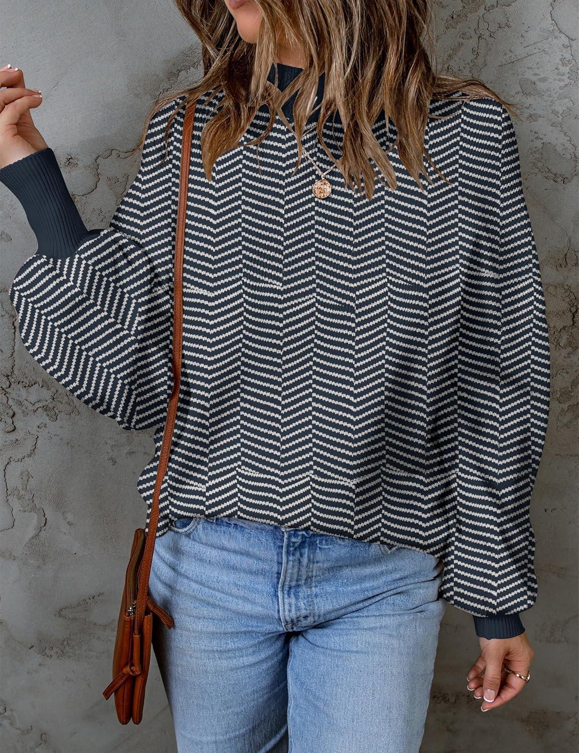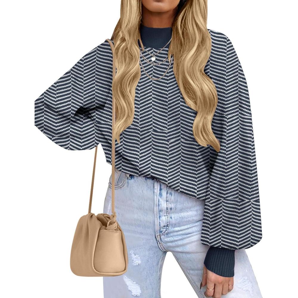 Get the ZESICA Women’s 2025 Fall Fashion Turtleneck Long Sleeve Striped Ribbed Knit Loose Pullover Sweater Tops(Navystripe) you want at a discounted price during our markdown sale event.