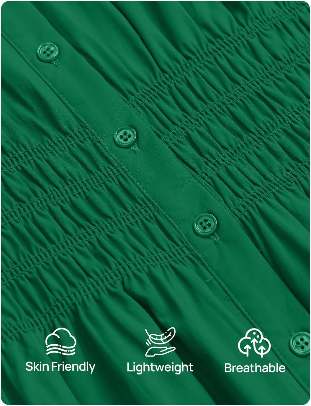 ZESICA Womens 2025 Fall Long Sleeve Blouse Business Dressy Casual Button Down Shirts Peplum Tops Fashion Trendy Clothes(Green)