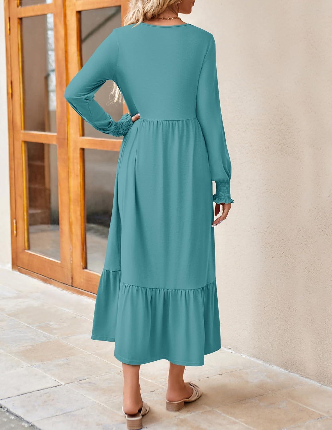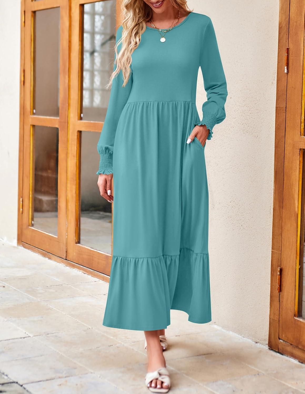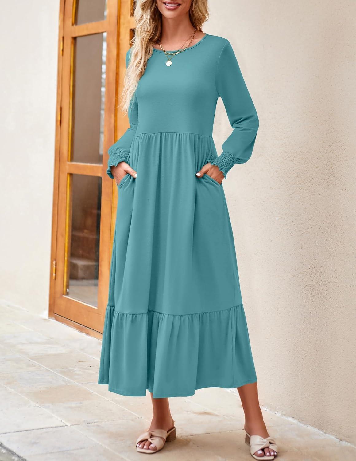 Don’t wait, get up to 50% off on ZESICA Women’s 2025 Fall Long Sleeve Dress Crewneck Casual Loose Pleated Tiered Swing Midi Dresses with Pockets(Sage) during our end-of-season sale event.