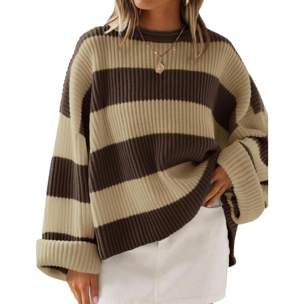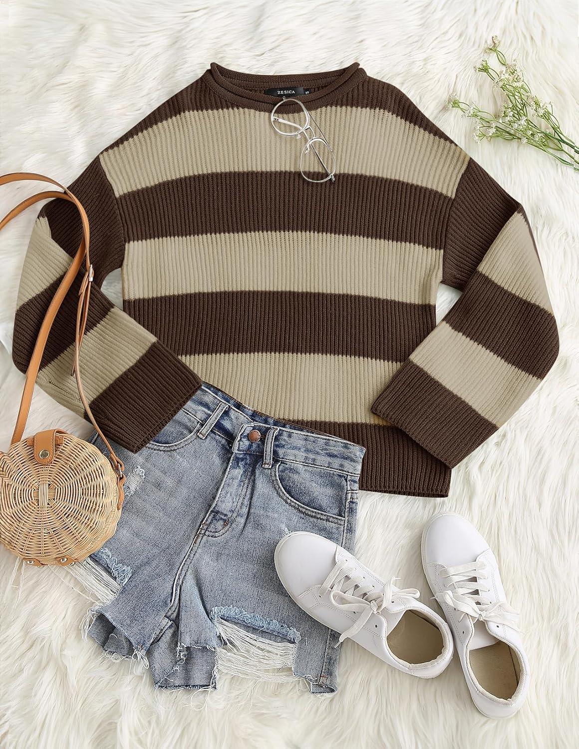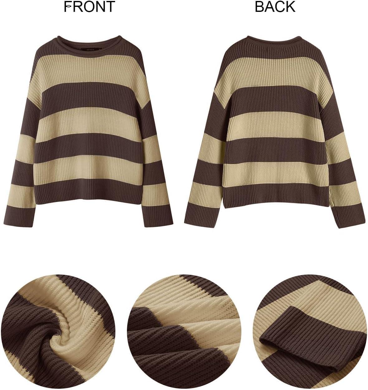 Don’t miss out on our limited-time offer: buy ZESICA Women’s 2025 Fall Long Sleeve Oversized Striped Color Block Comfy Loose Crew Neck Knitted Pullover Sweater(Brown), get {accessory} free!