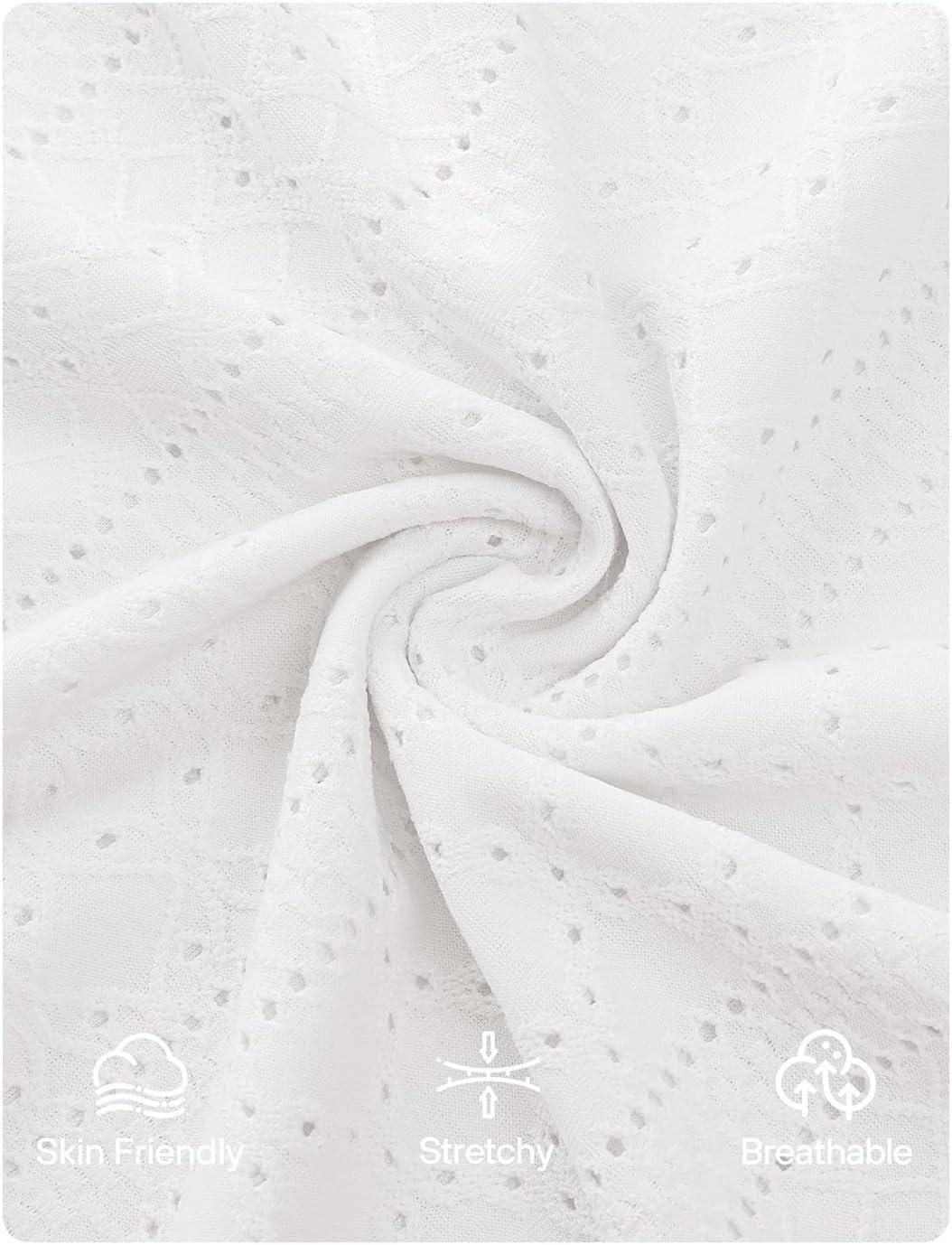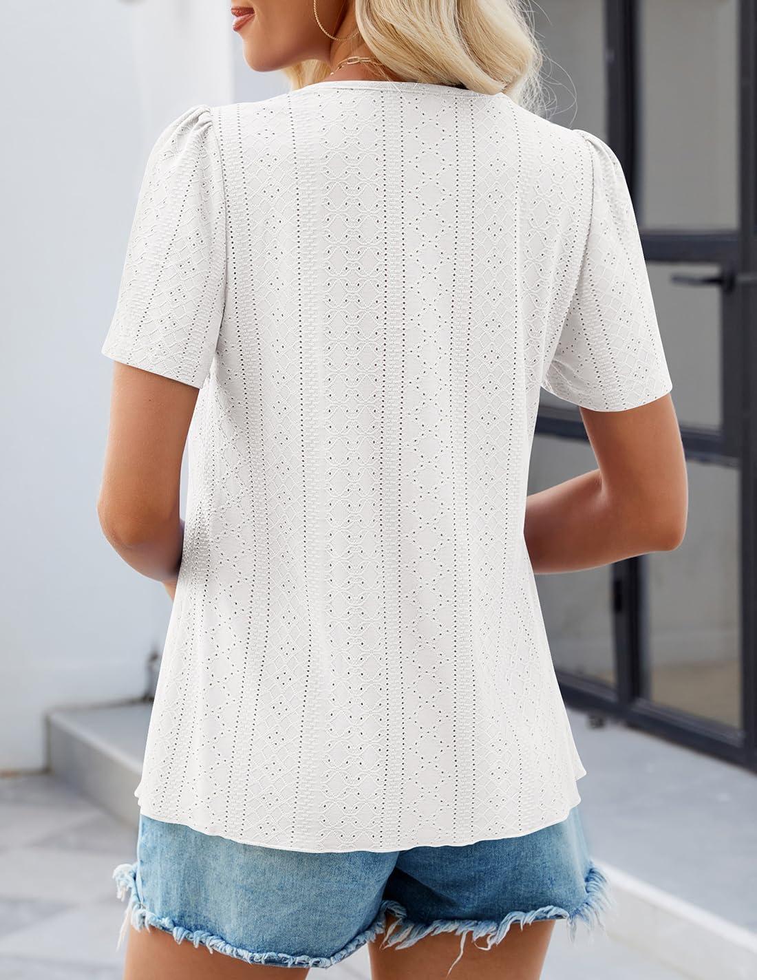 ZESICA Women's 2025 Short Sleeve Eyelet T Shirts Crew Neck Flowy Loose fit Summer Basic Casual Blouses(White)