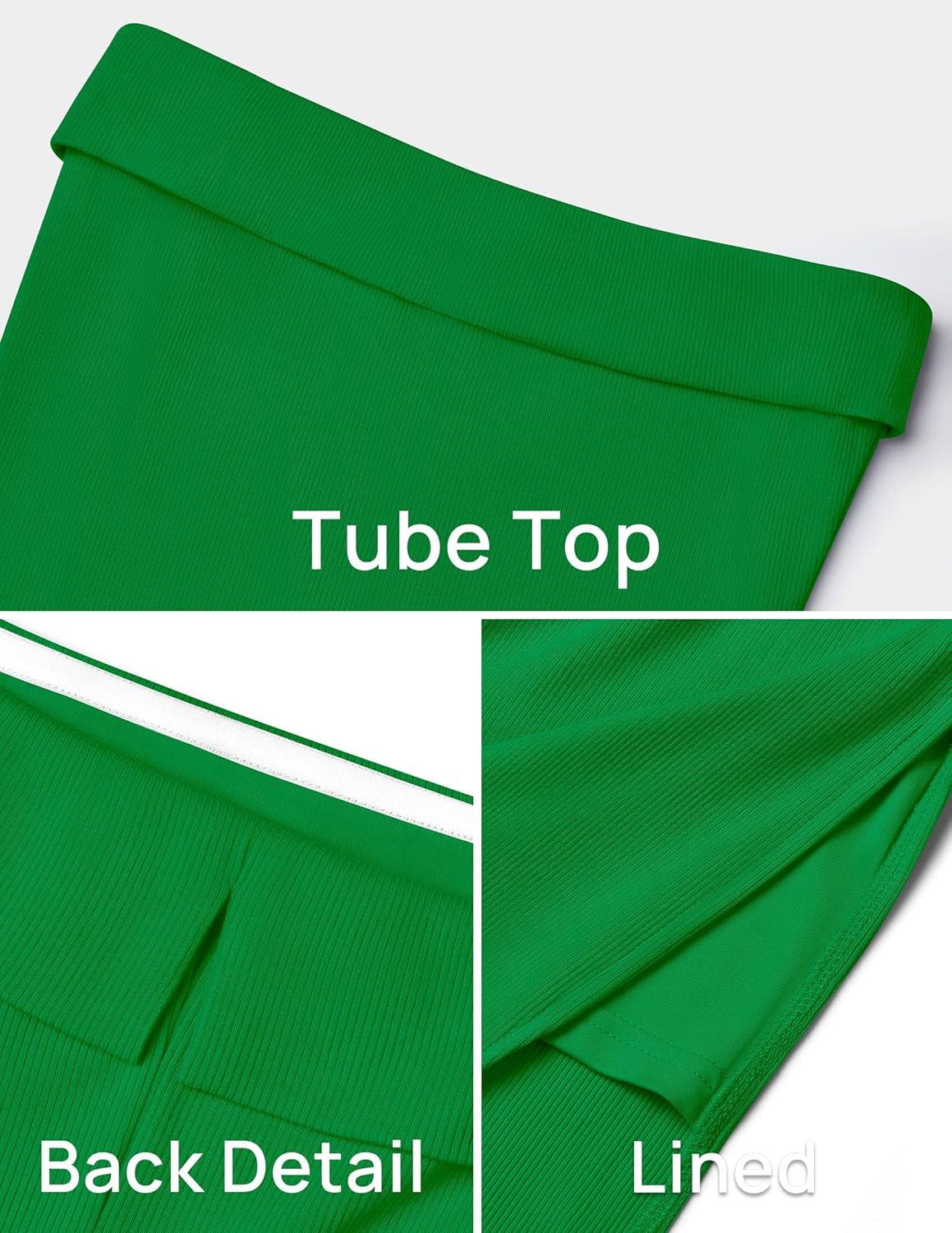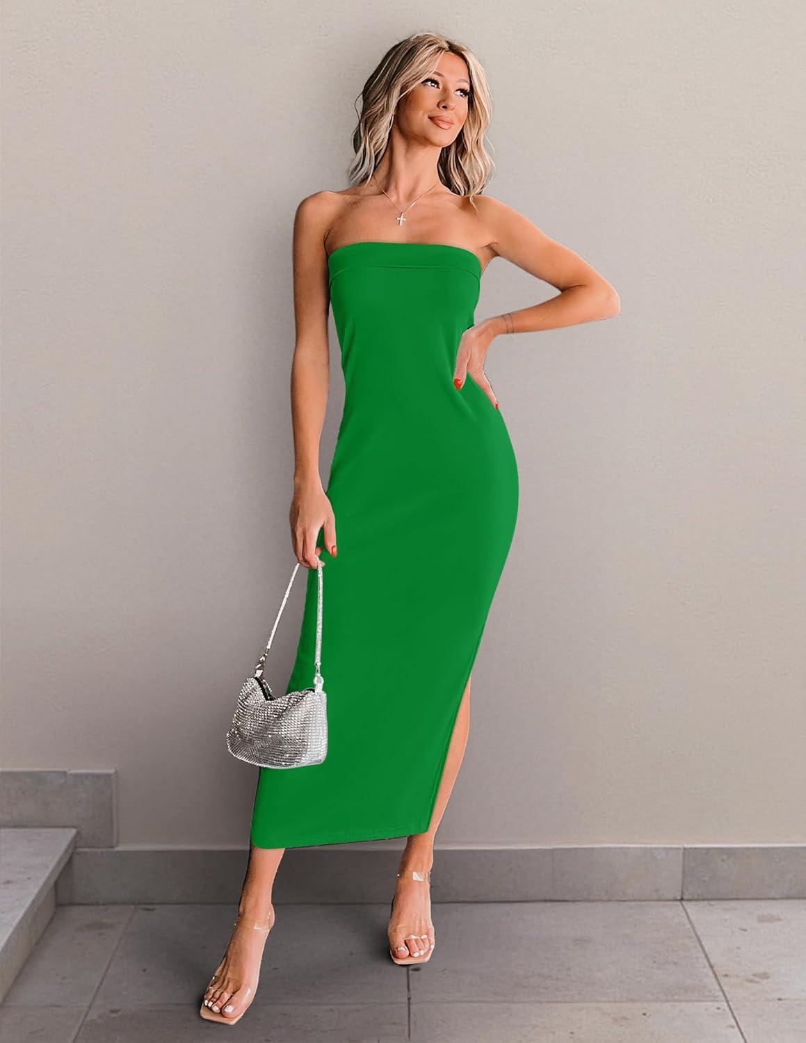 ZESICA Women’s 2025 Summer Strapless Bodycon Midi Dress Off Shoulder Sleeveless Side Slit Tube Long Club Party Dresses(Green)