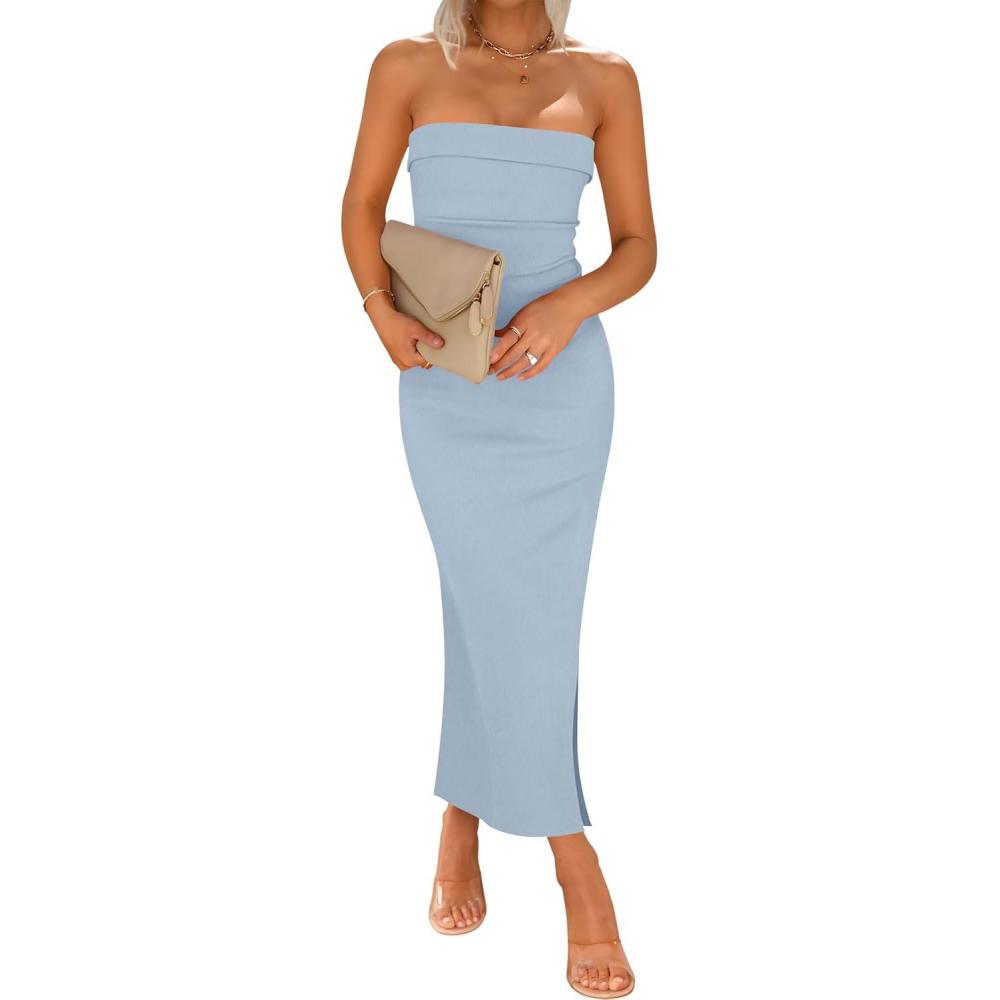 Don’t miss out on our limited-time offer: get a free {accessory} with your purchase of ZESICA Women’s 2025 Summer Strapless Bodycon Midi Dress Off Shoulder Sleeveless Side Slit Tube Long Club Party Dresses(Light Blue).