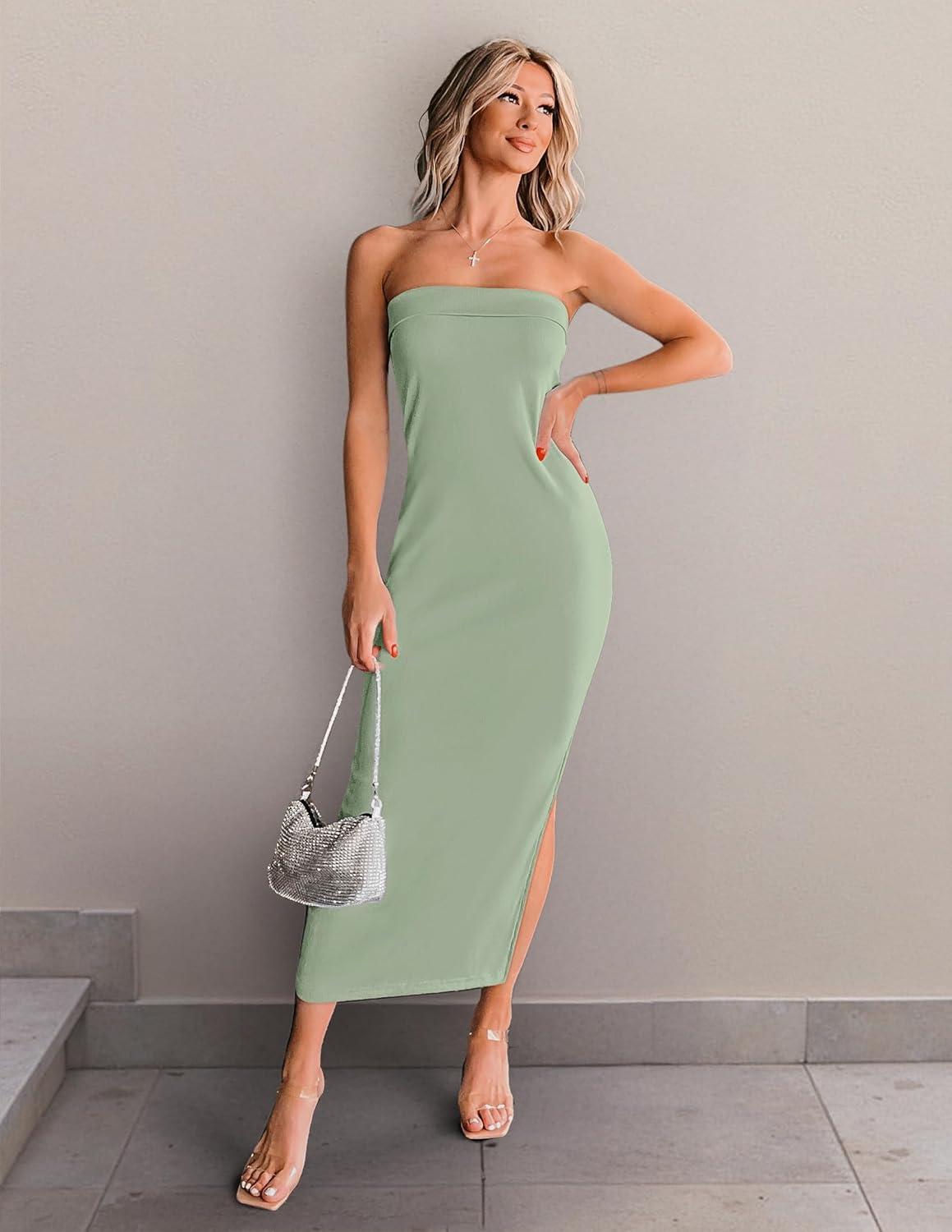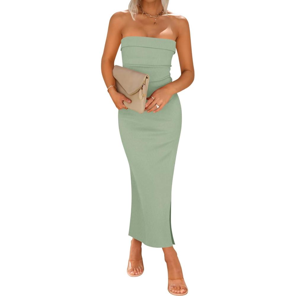 Get more for your money with our exclusive bundle deals on ZESICA Women’s 2025 Summer Strapless Bodycon Midi Dress Off Shoulder Sleeveless Side Slit Tube Long Club Party Dresses(Sage) and accessories.