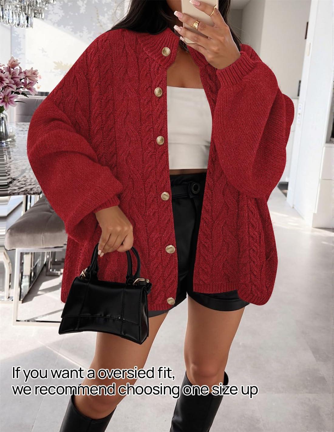 Be the first to review “ZESICA Women’s Button Down Cardigan Sweaters 2025 Fall Lantern Long Sleeve Mock Neck Chunky Knit Outerwear Coat(Red)”