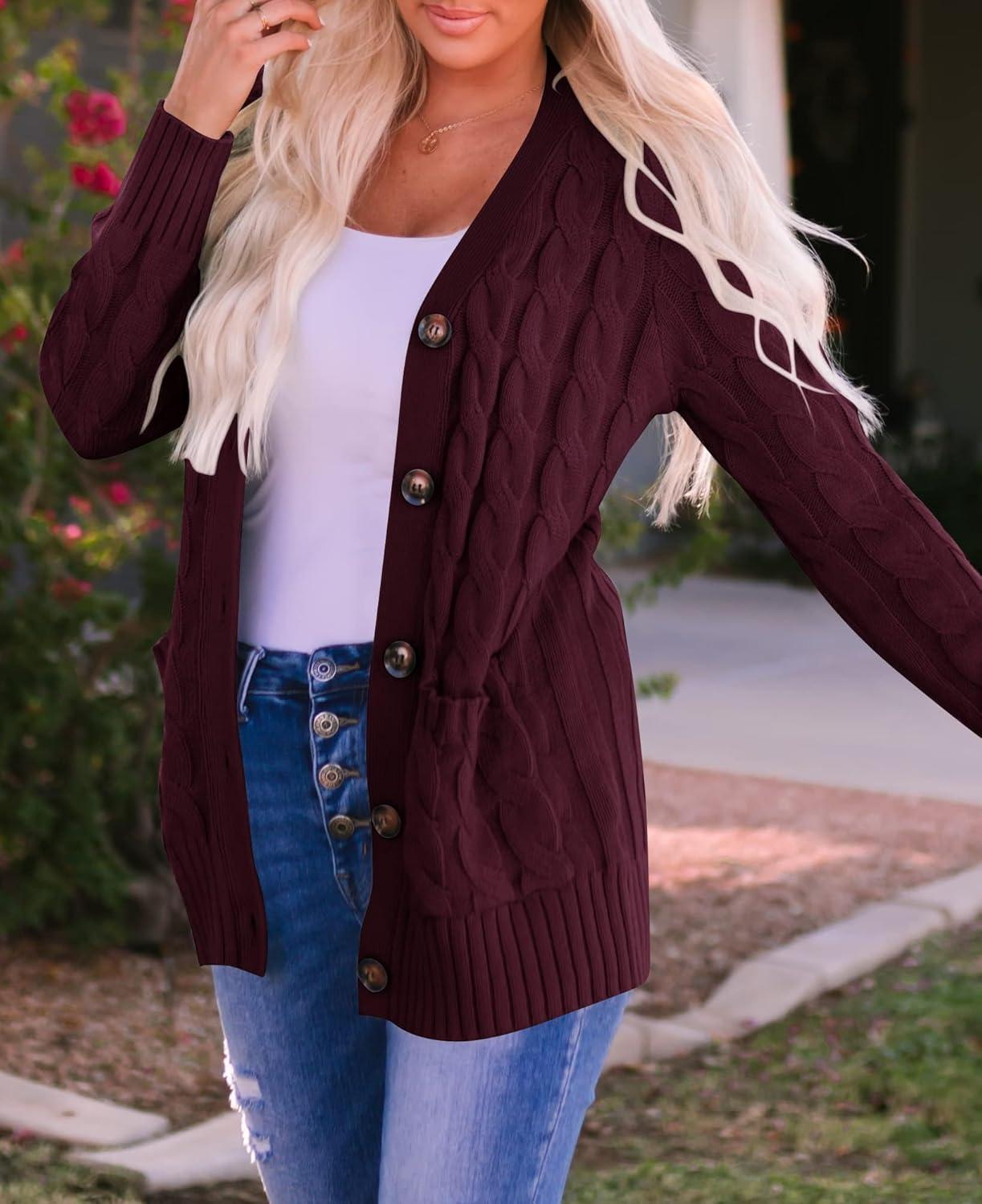 ZESICA Women’s Cardigan Sweaters 2025 Fall Button Down Open Front Cable Knit Casual Trendy Winter Clothing Outerwear(Burgundy)