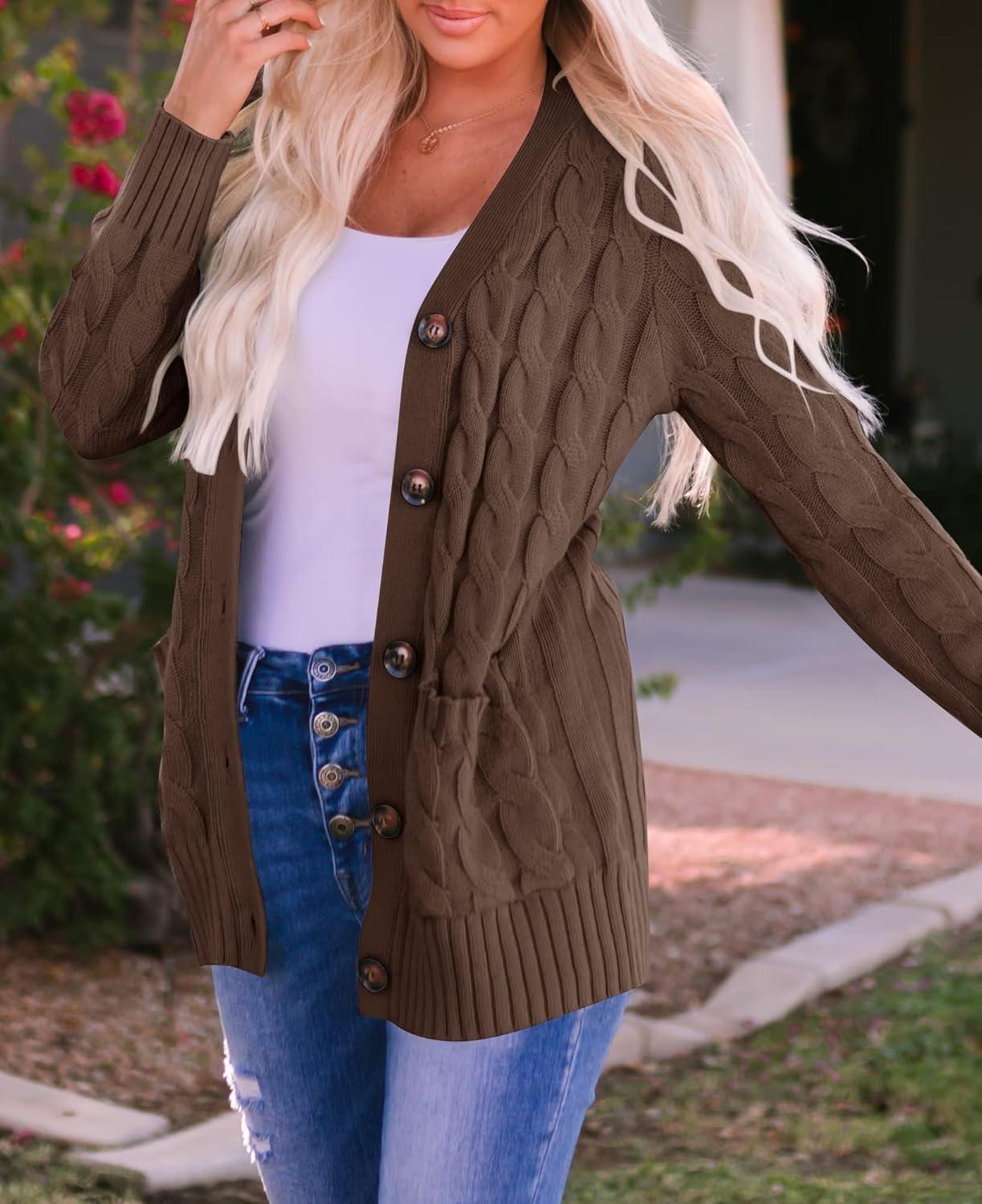 ZESICA Women’s Cardigan Sweaters 2025 Fall Button Down Open Front Cable Knit Casual Trendy Winter Clothing Outerwear(Coffee)