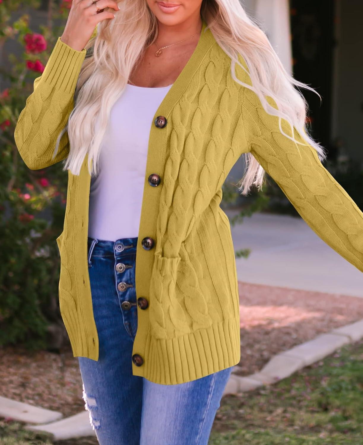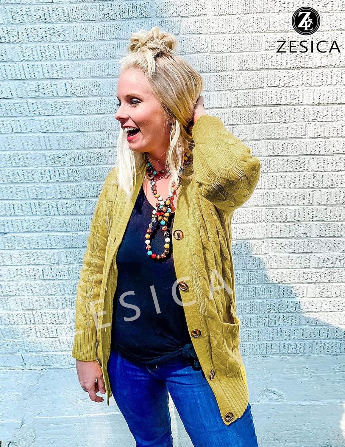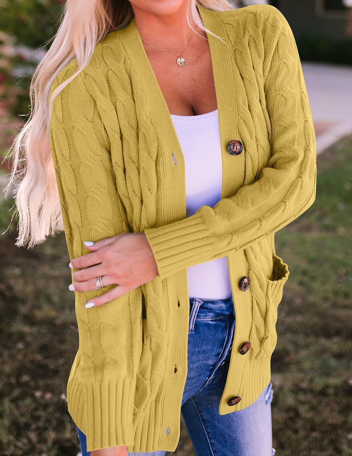 ZESICA Women’s Cardigan Sweaters 2025 Fall Button Down Open Front Cable Knit Casual Trendy Winter Clothing Outerwear(Mustard)