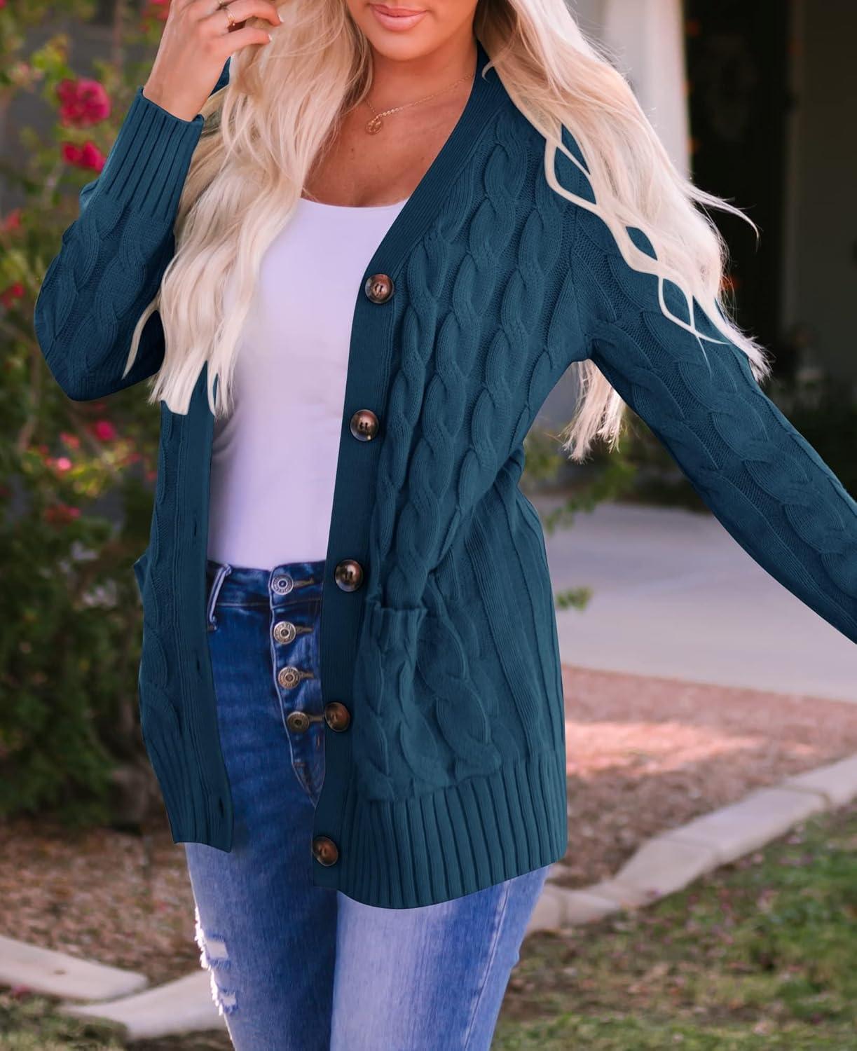 ZESICA Women’s Cardigan Sweaters 2025 Fall Button Down Open Front Cable Knit Casual Trendy Winter Clothing Outerwear(Teal)