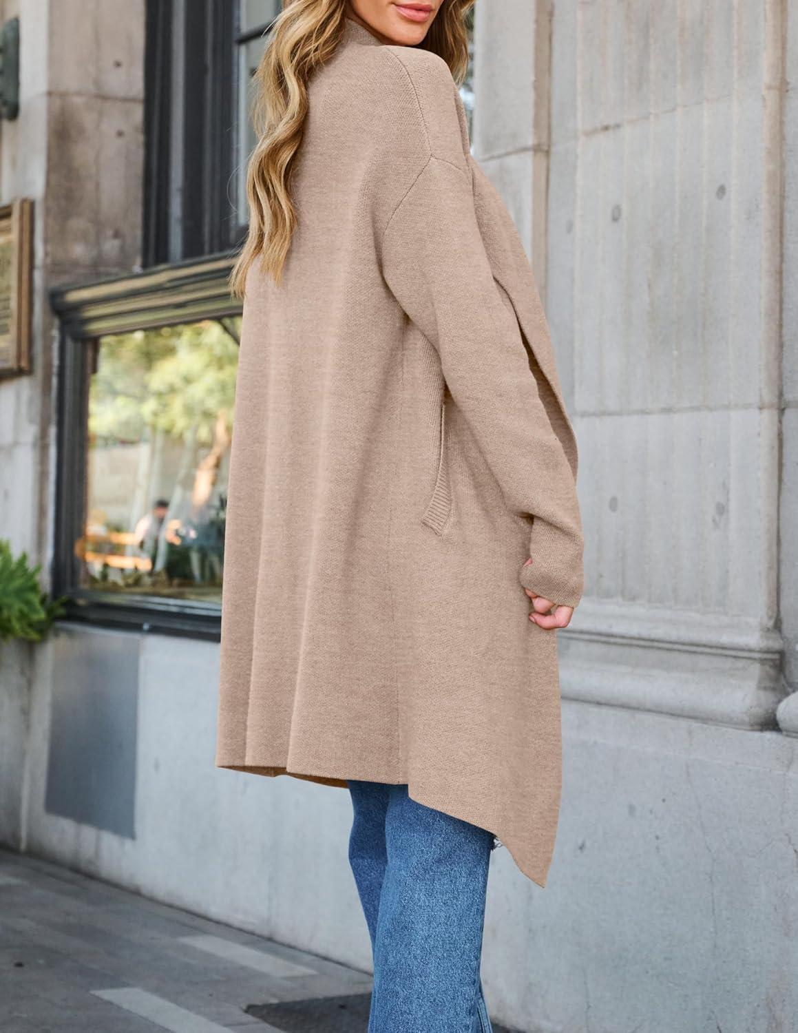 ZESICA Women’s Casual Lapel Cardigan Long Sleeve Open Front Irregular Hem Soft Knitted Sweater Coat with Pockets(Oats)