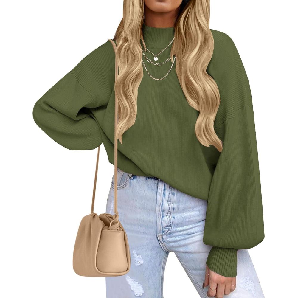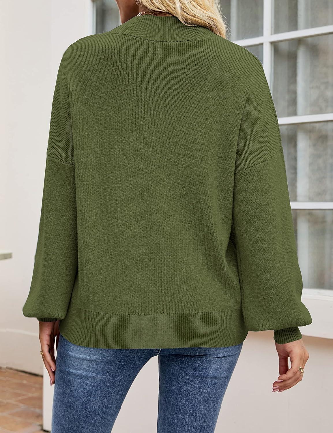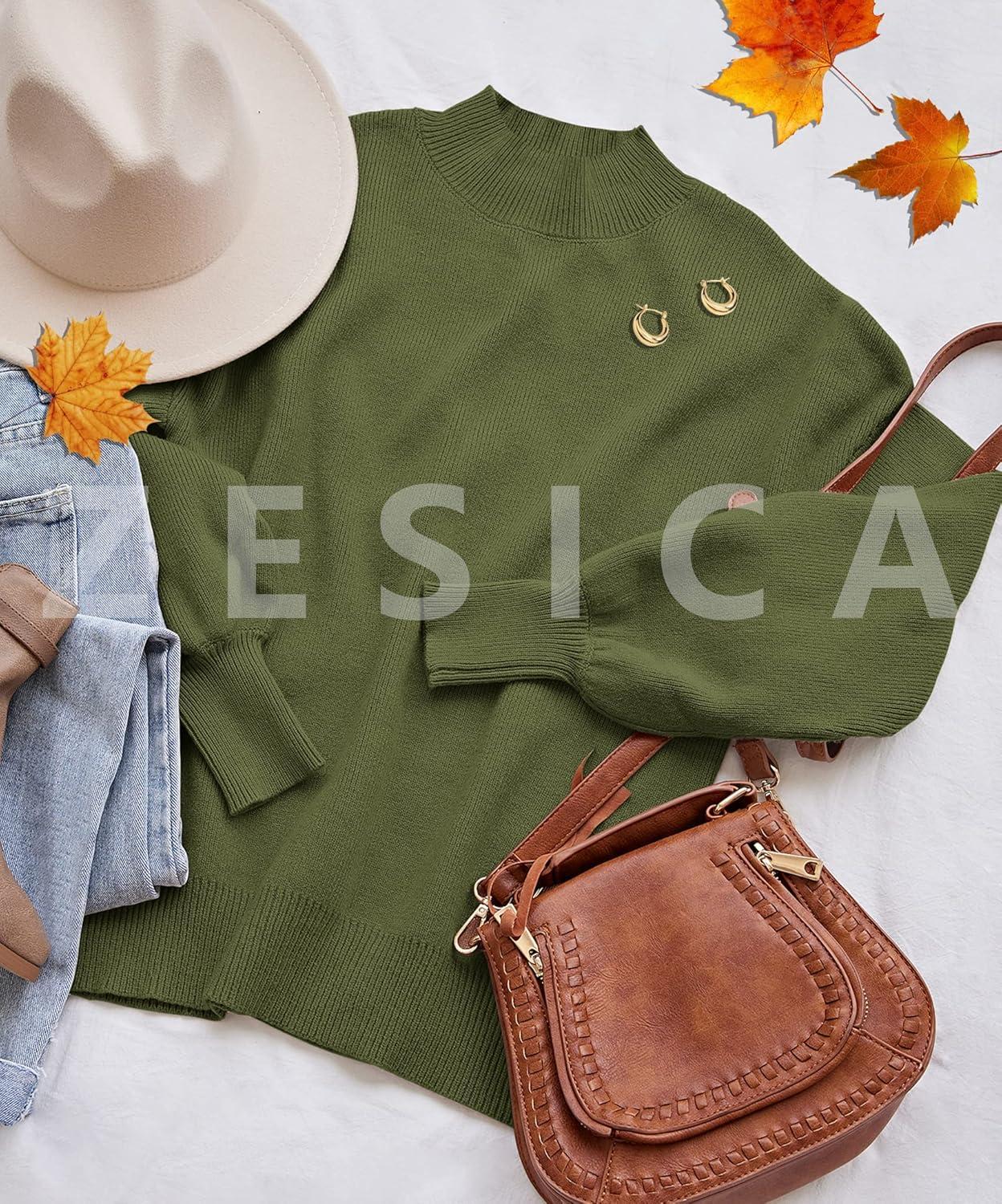 ZESICA Women’s Casual Turtleneck Long Lantern Sleeve Fall 2025 Oversized Ribbed Knit Pullover Sweater Jumper Top(Armygreen)