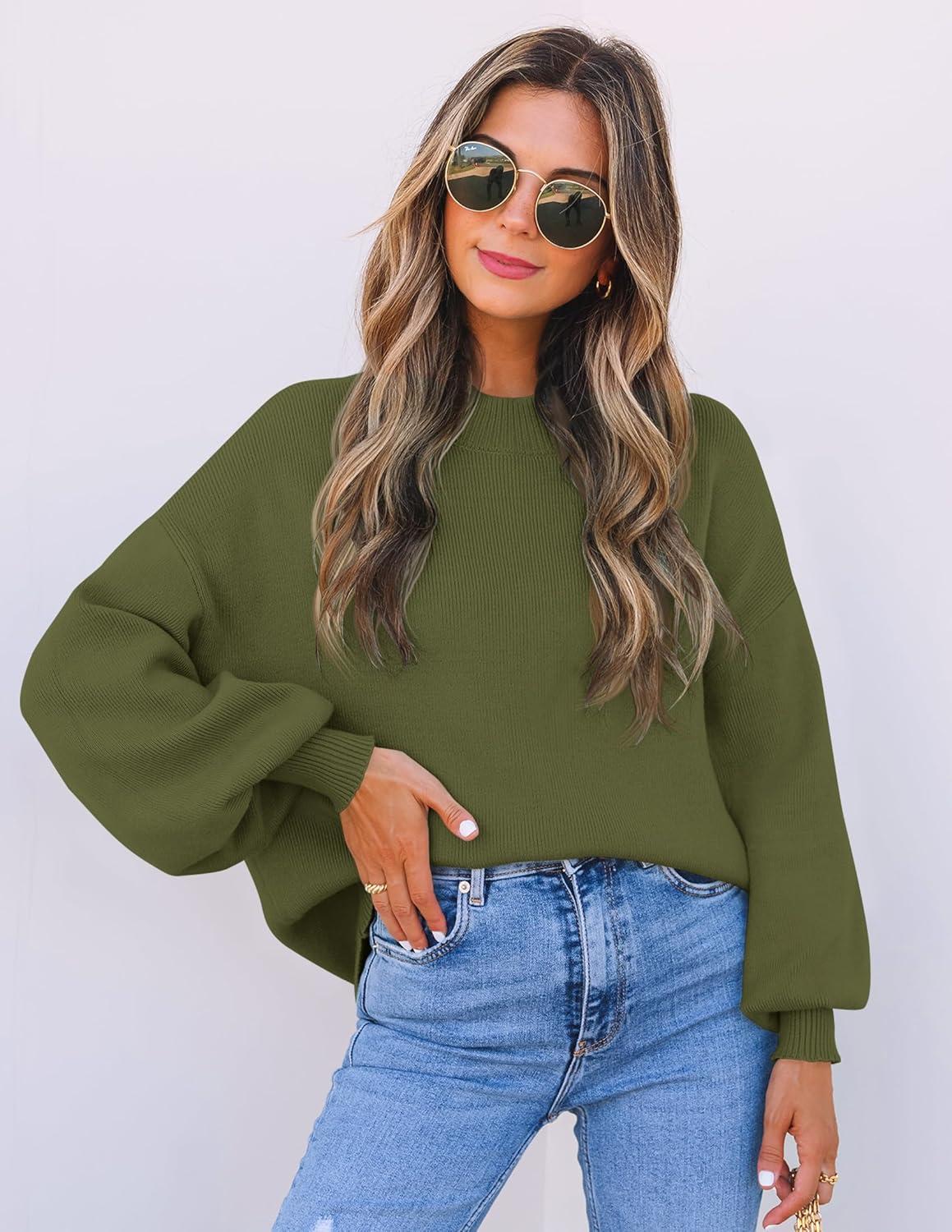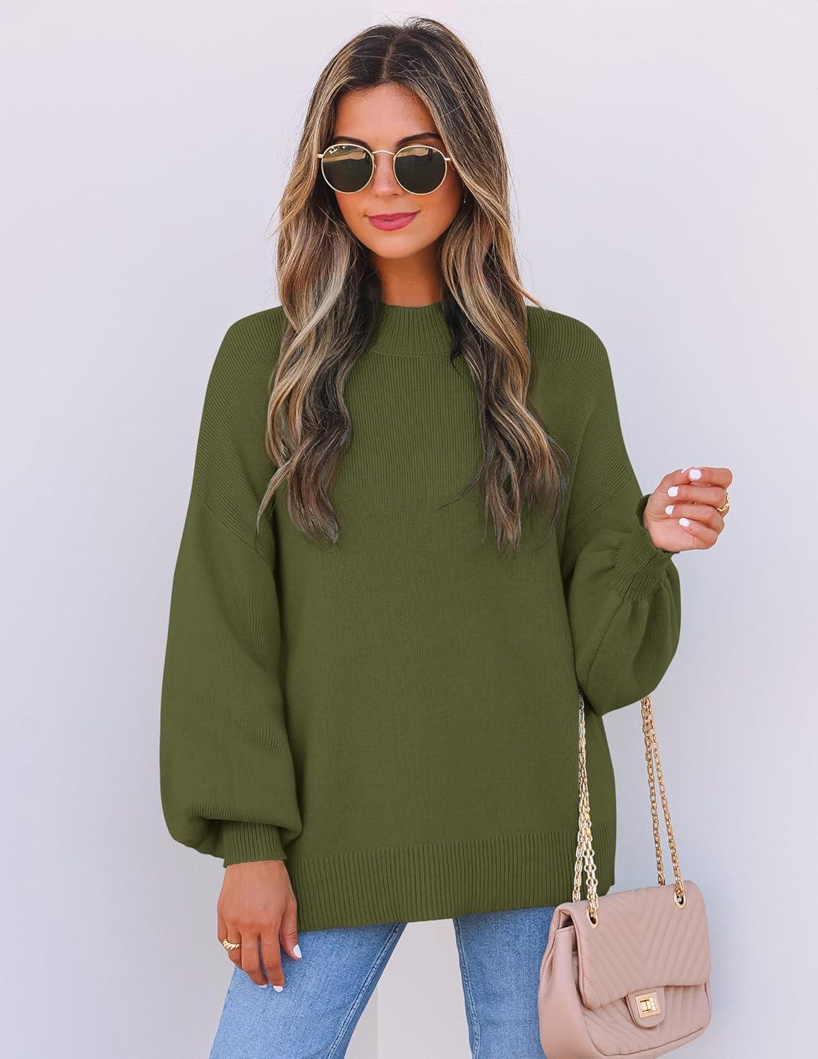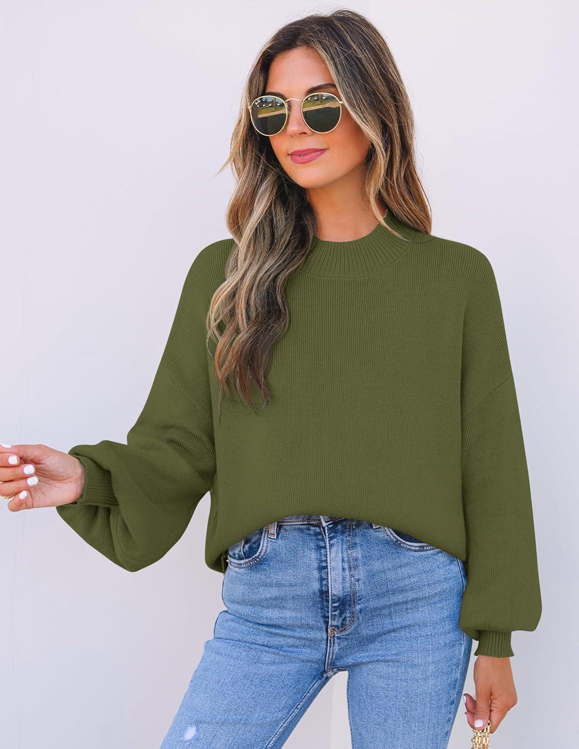ZESICA Women’s Casual Turtleneck Long Lantern Sleeve Fall 2025 Oversized Ribbed Knit Pullover Sweater Jumper Top(Armygreen)