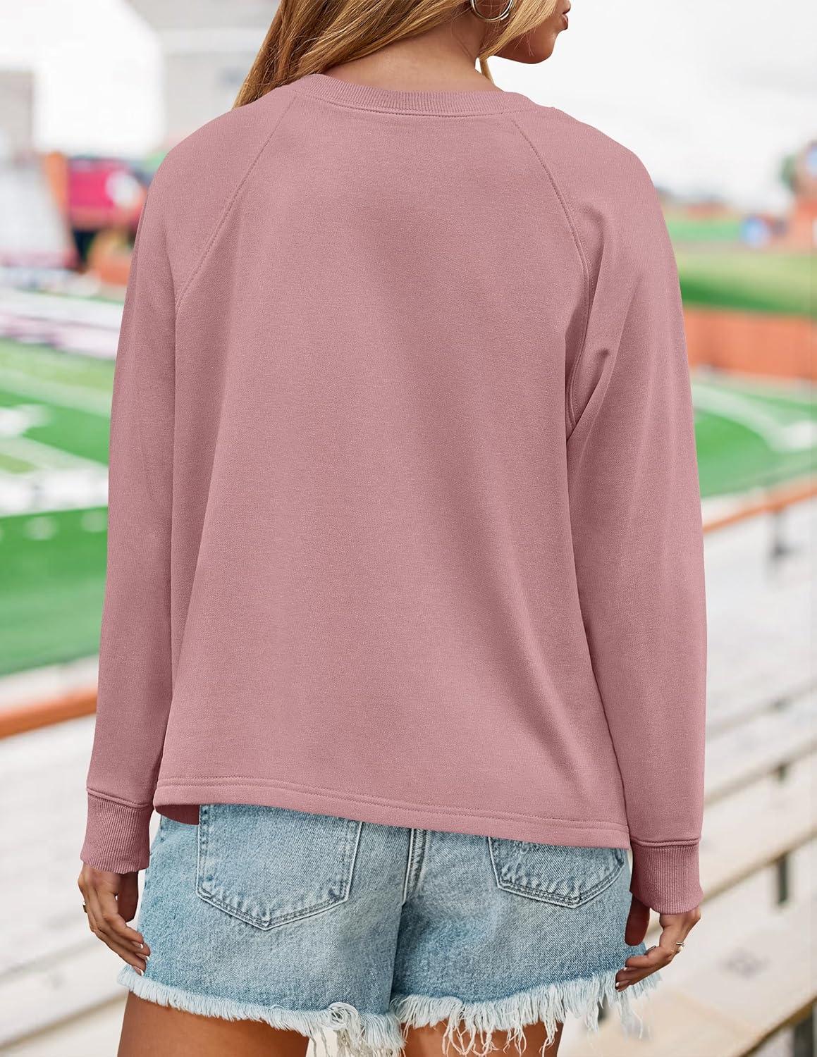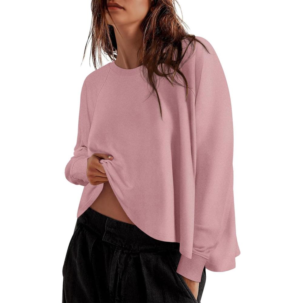 ZESICA Womens Causal Long Sleeve Lightweight Sweatshirts Crewneck Side Slit Loose Shirts Basic Fall Tops(Pink)
