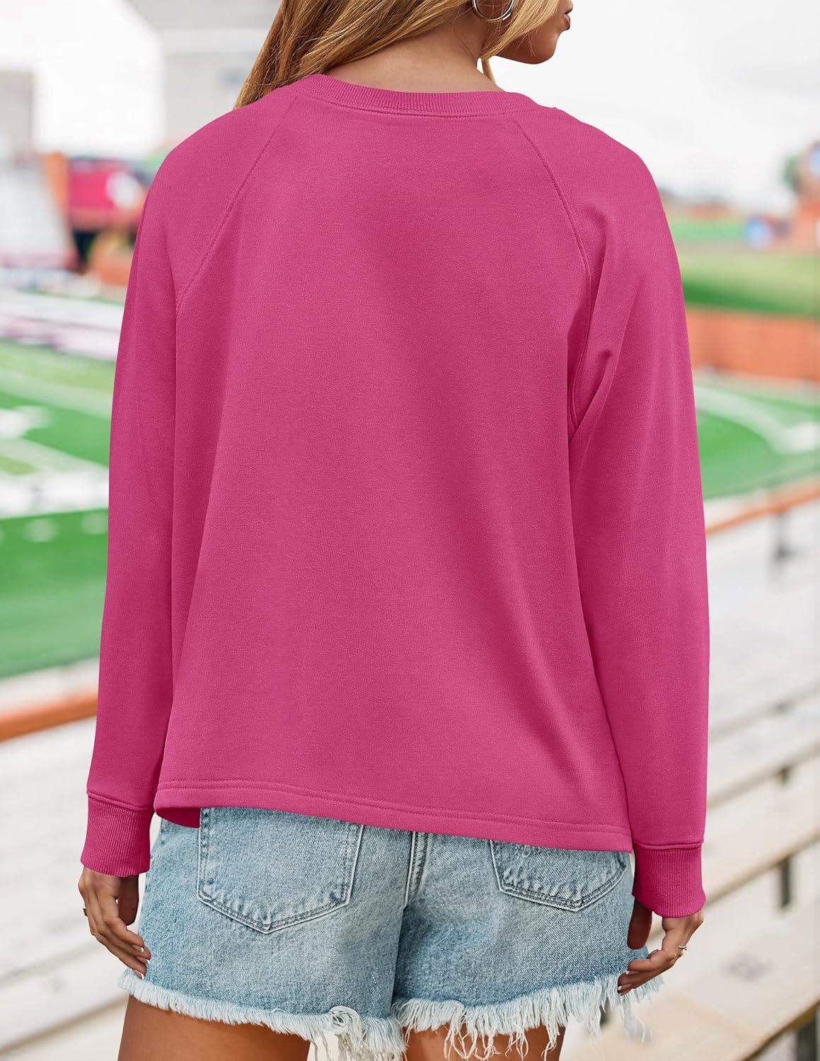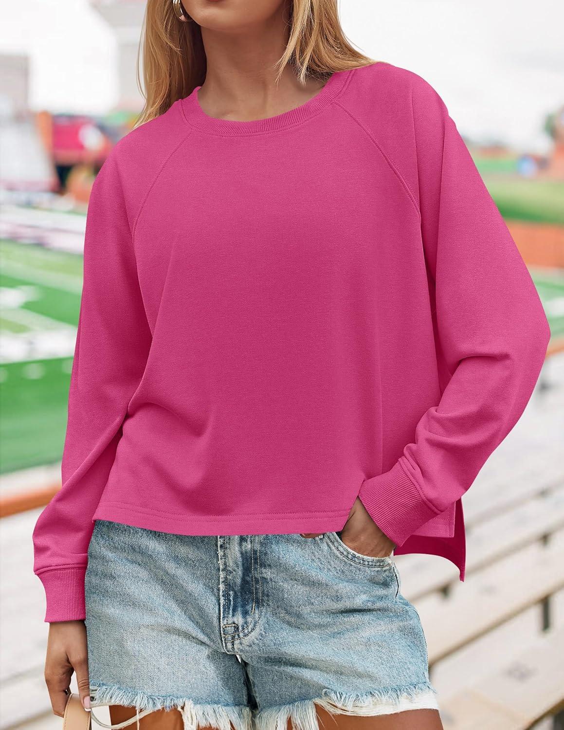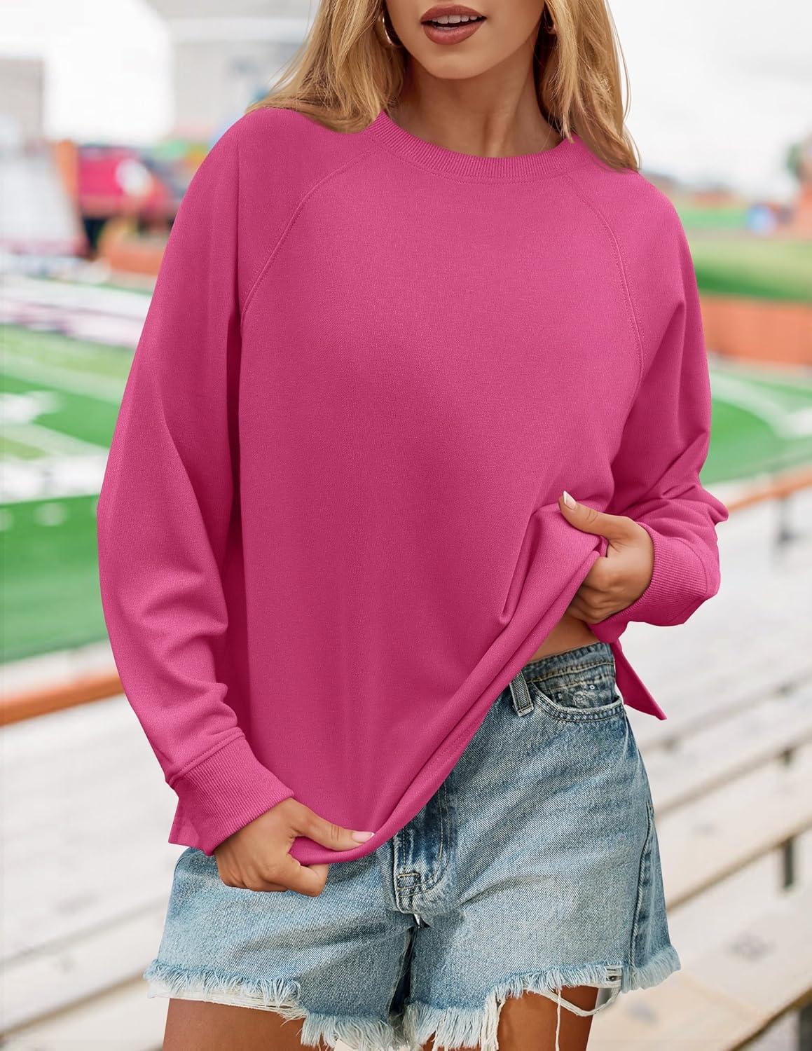 ZESICA Womens Causal Long Sleeve Lightweight Sweatshirts Crewneck Side Slit Loose Shirts Basic Fall Tops(Rose Red)