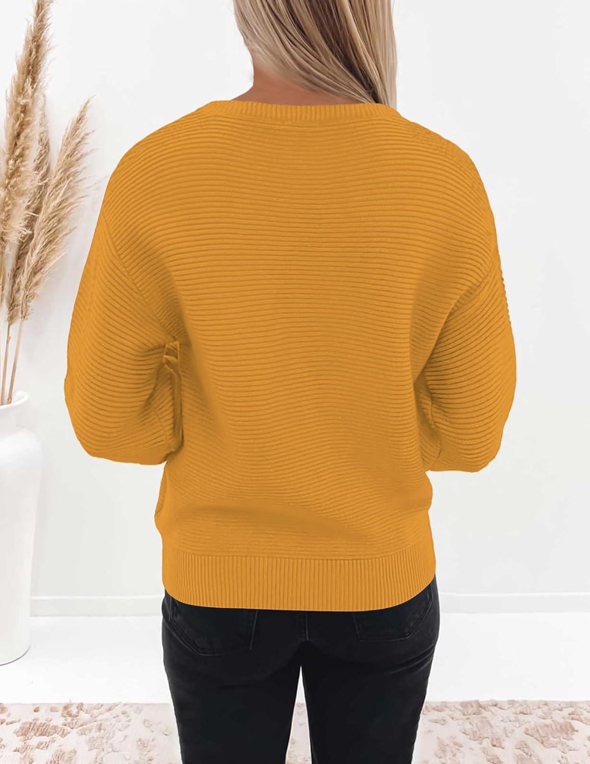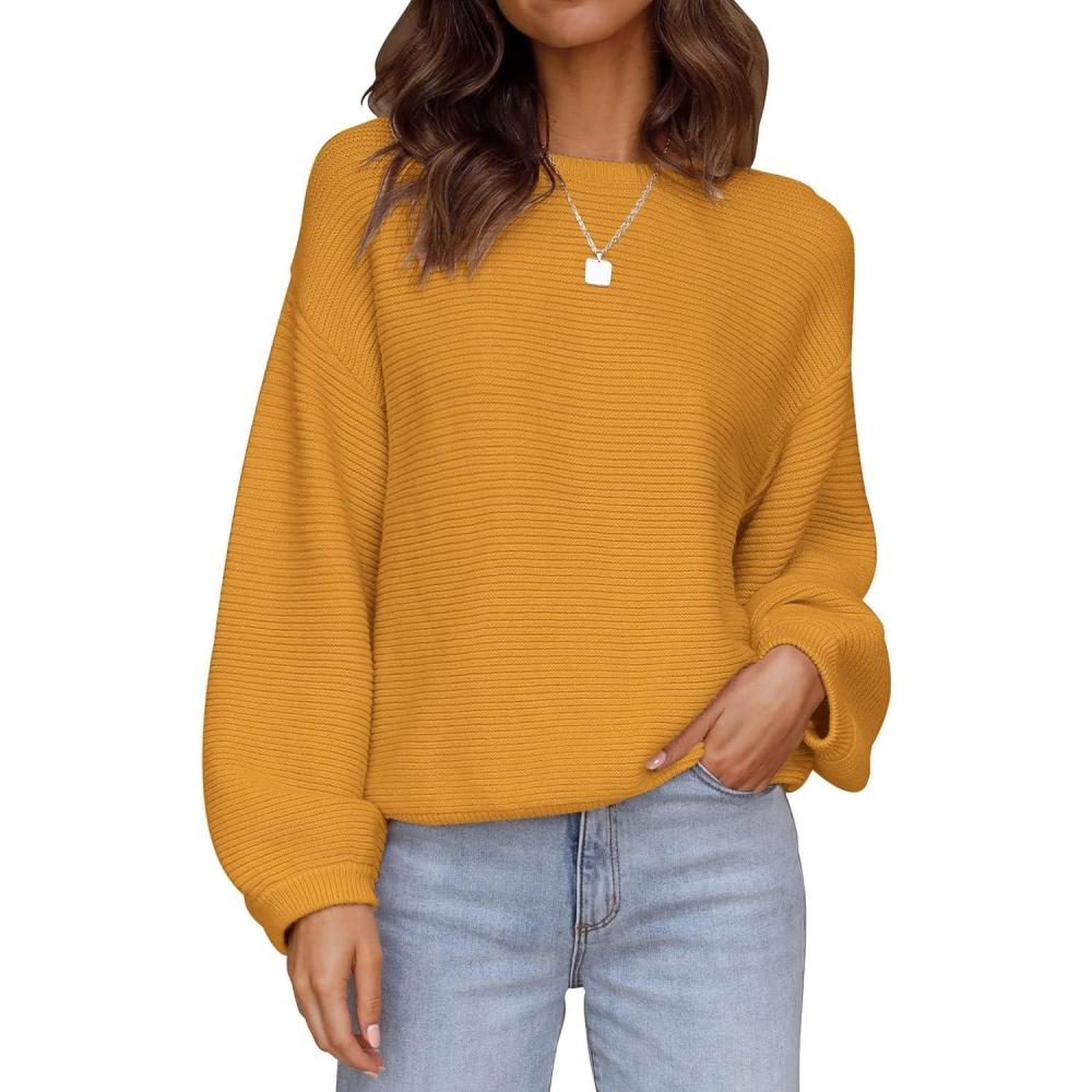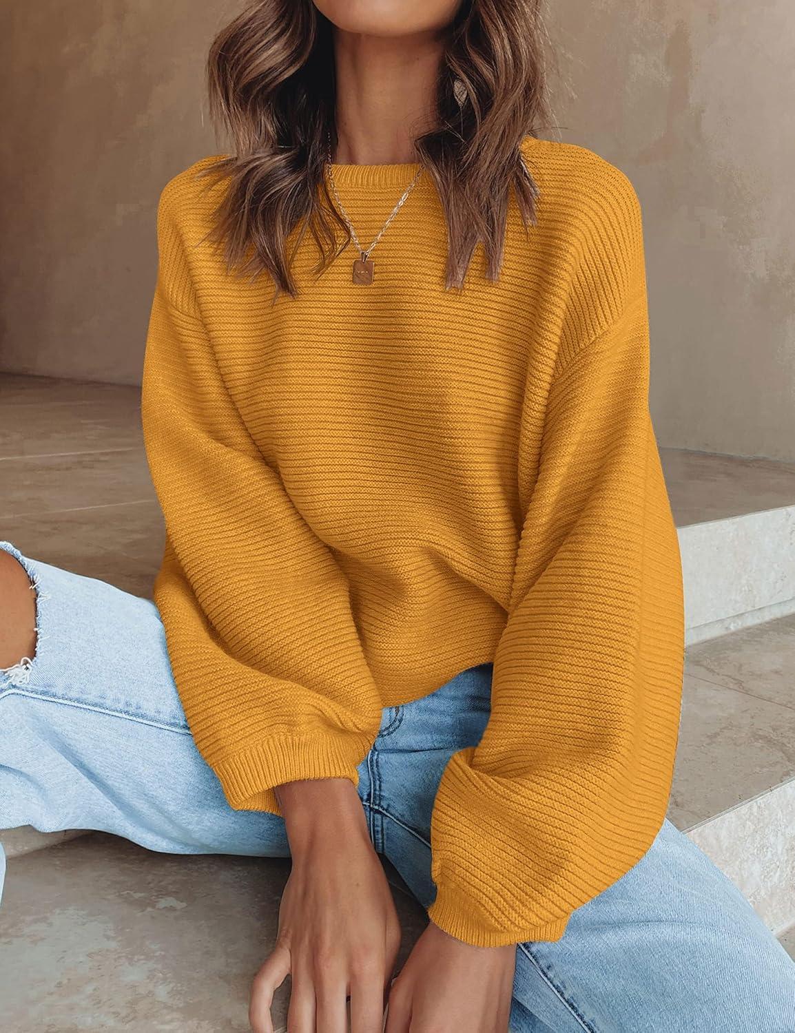 ZESICA Women's Crew Neck Long Lantern Sleeve Fall 2025 Casual Loose Ribbed Knit Solid Soft Pullover Sweater Tops(Ginger)