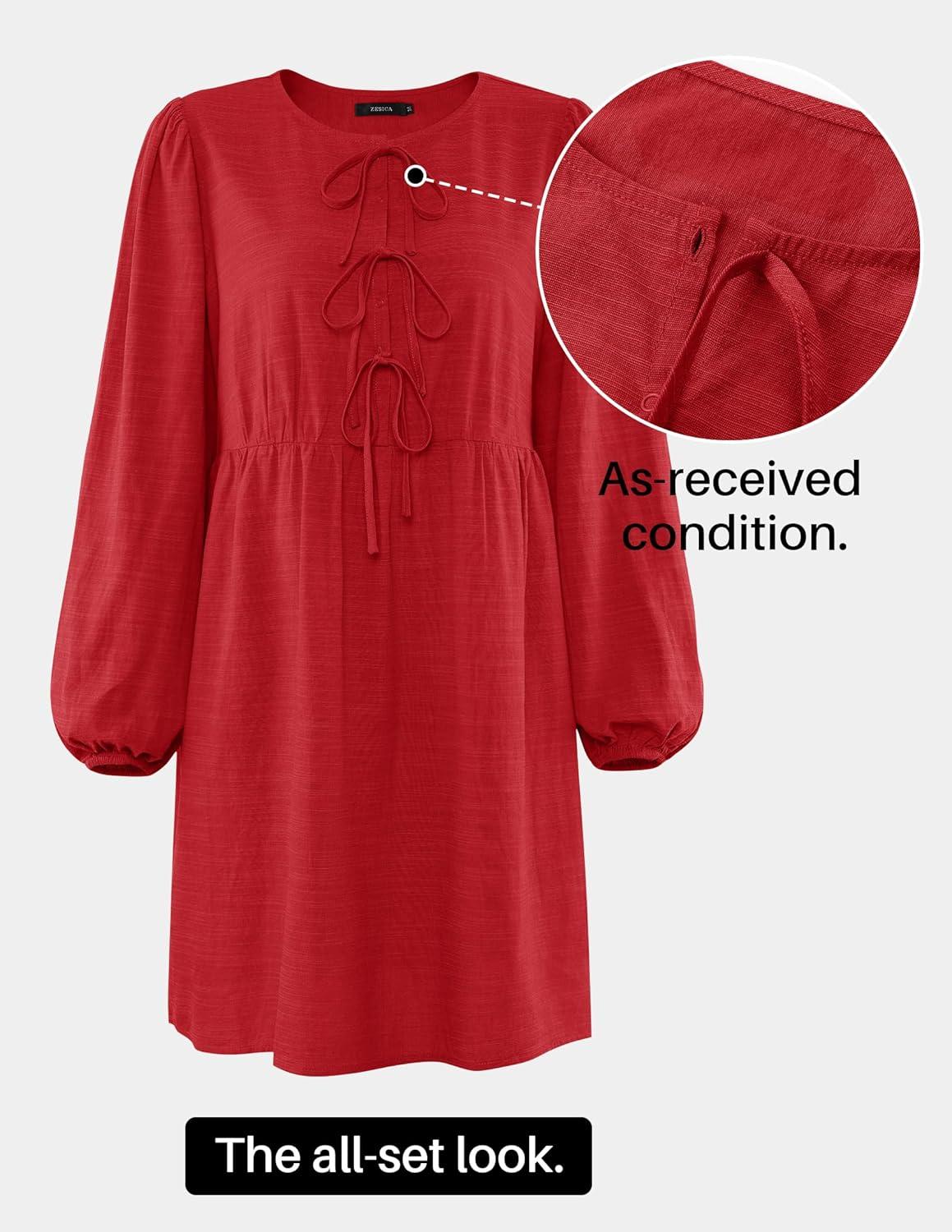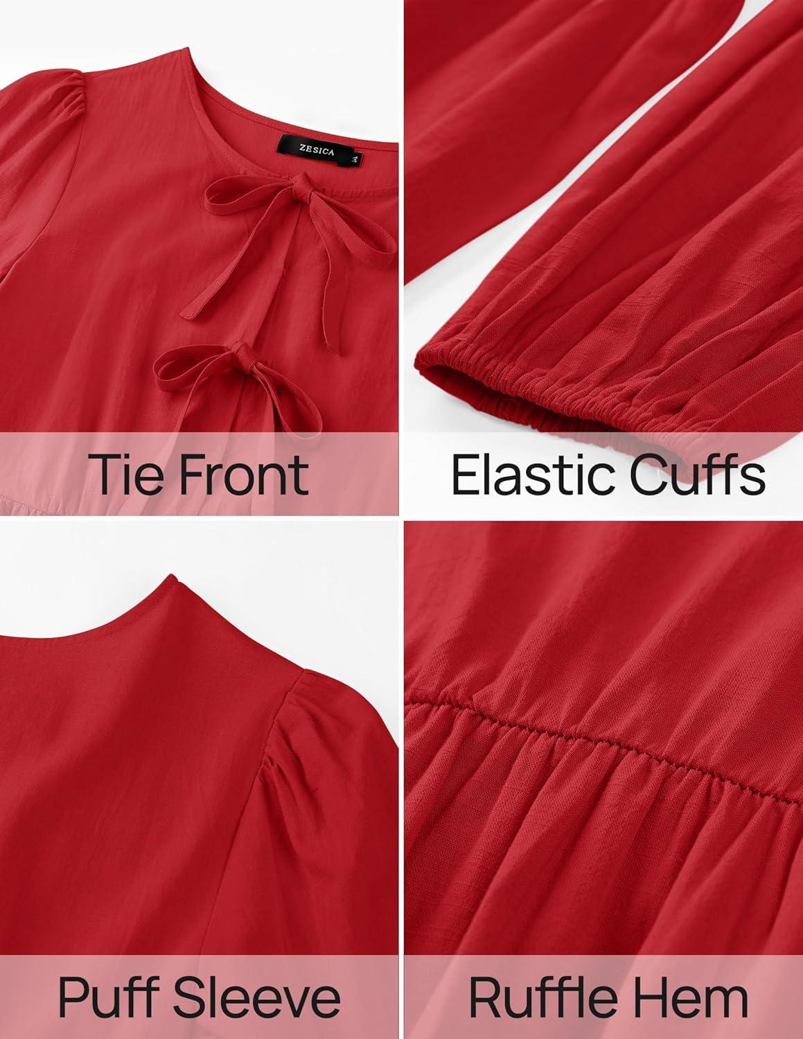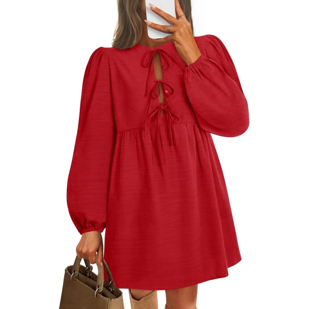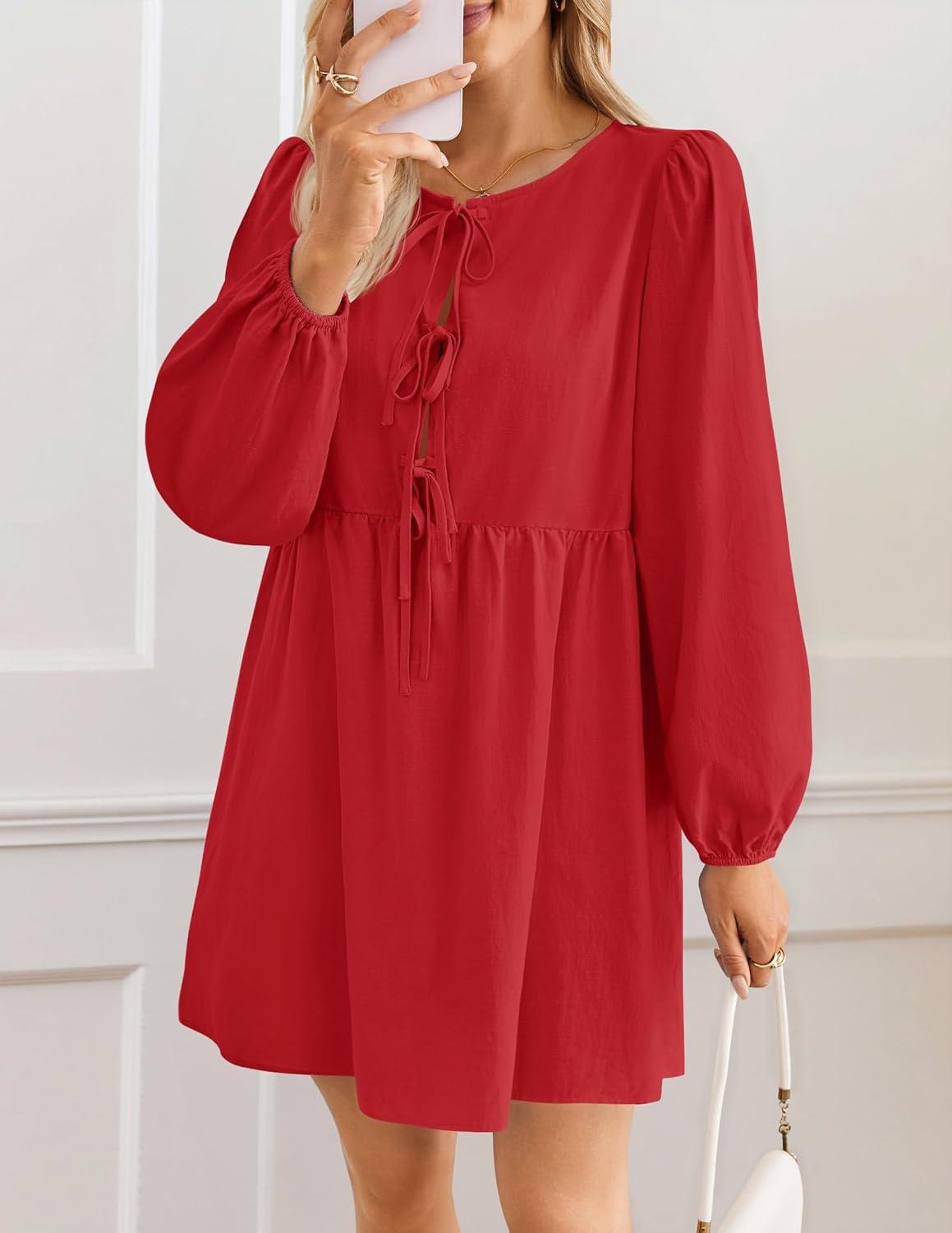 Save up to 40% on ZESICA Women’s Dress Fall Long Puff Sleeve Self Tie Front Babydoll A Line Pleated Cute Mini Tunic Dresses 2025(Red) styles during our end-of-season sale.