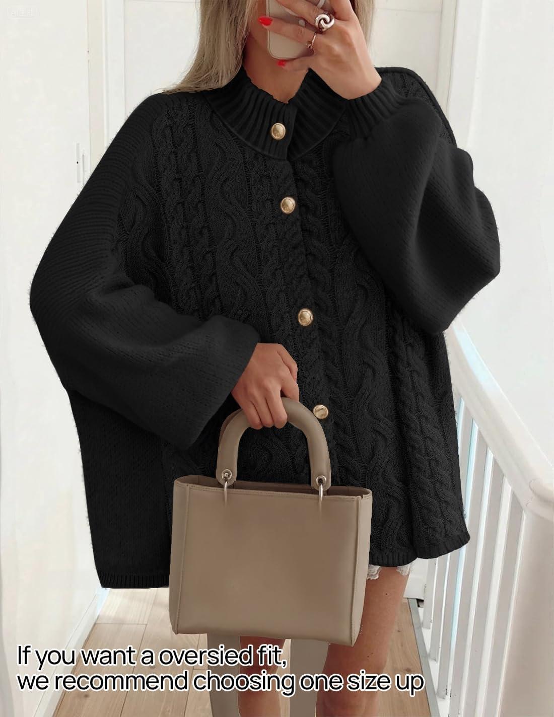 ZESICA Women's Fall 2025 Cardigan Sweaters Long Sleeve Button Down Oversized Soft Knit Winter Coats Trendy Outerwear(Black)