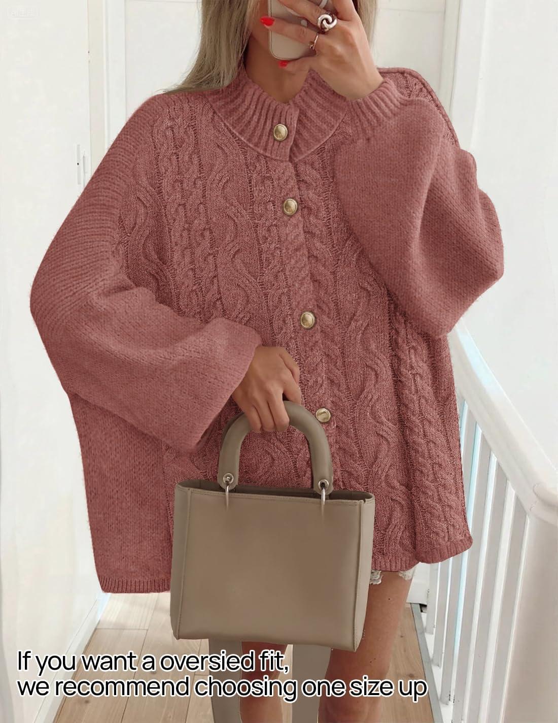 Elevate your cold – season wardrobe with the ZESICA Women’s Mock Neck Cable – Knit Cardigan, a 2025 fall/winter pick blending timeless charm and modern ease. Crafted for seasonal transitions, its chunky knit brings softness and gentle stretch, keeping shape while moving freely and locking in cozy warmth. The mock neck shields from chilly breezes and adds a polished touch, with the intricate cable – knit pattern lending heritage – inspired texture—pair it effortlessly with casual tees or dressier blouses. Eye – catching gold – tone buttons lift the classic silhouette, working for office days or date nights alike. Lantern sleeves with a subtle shoulder puff and tapered cuffs, plus a relaxed oversized fit, drape in a laid – back yet on – trend way that flatters diverse body types, making layering a breeze. A true wardrobe chameleon: style over a white tee + jeans + sneakers for casual cool; atop a silk blouse + tailored trousers + loafers for office polish; over a little black dress + belt + ankle boots for date night charm; or with leggings + a tank for cozy loungewear—suited for errands, work, dates, outings, or winter getaways. For care, machine wash in a laundry bag on gentle, skip bleach, iron on low if needed, and hang/line dry to keep it looking its best. More than just outerwear, it’s a season – spanning style essential—embrace warmth, comfort, and fashion – forward flair.