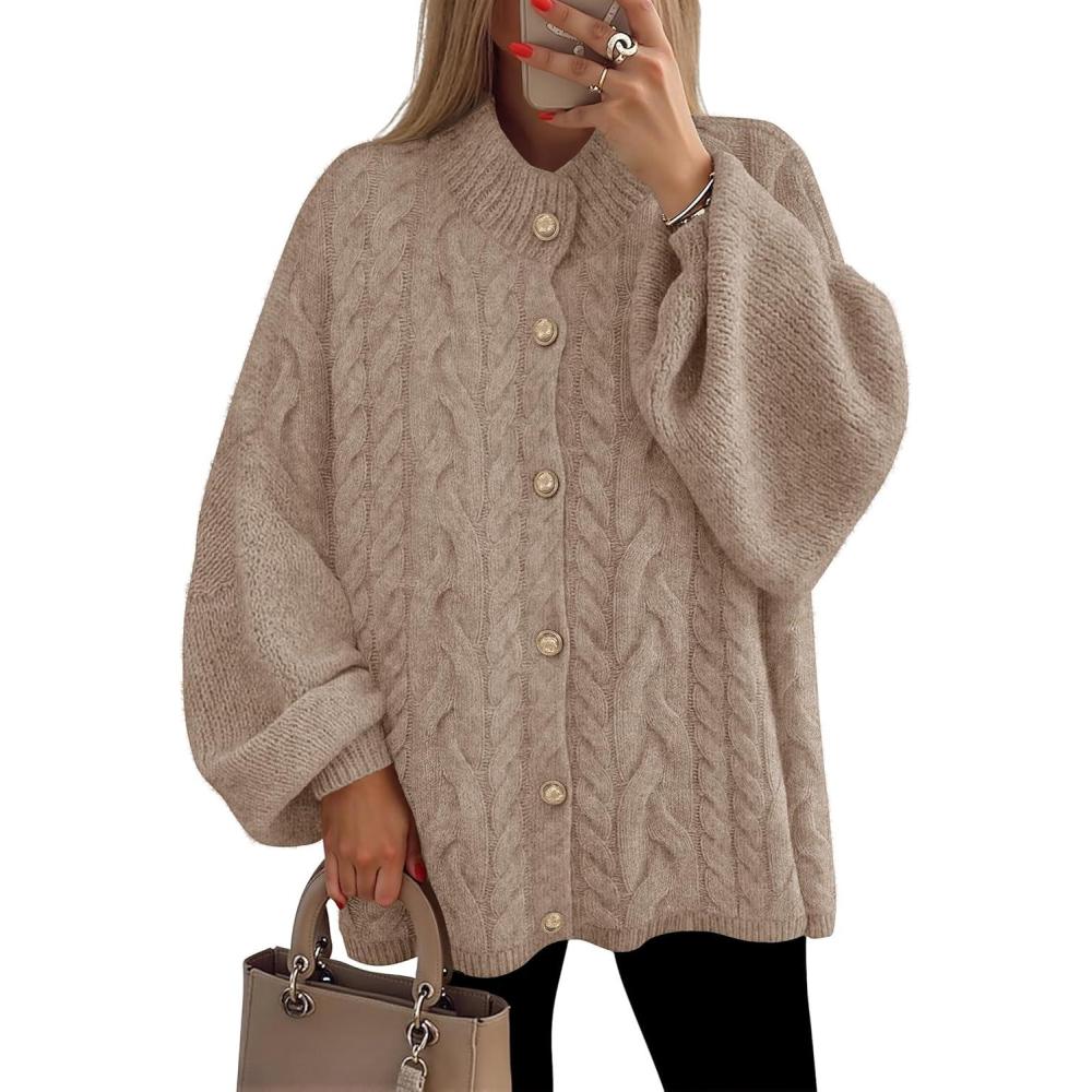 Elevate your cold – season wardrobe with the ZESICA Women’s Mock Neck Cable – Knit Cardigan, a 2025 fall/winter pick blending timeless charm and modern ease. Crafted for seasonal transitions, its chunky knit brings softness and gentle stretch, keeping shape while moving freely and locking in cozy warmth. The mock neck shields from chilly breezes and adds a polished touch, with the intricate cable – knit pattern lending heritage – inspired texture—pair it effortlessly with casual tees or dressier blouses. Eye – catching gold – tone buttons lift the classic silhouette, working for office days or date nights alike. Lantern sleeves with a subtle shoulder puff and tapered cuffs, plus a relaxed oversized fit, drape in a laid – back yet on – trend way that flatters diverse body types, making layering a breeze. A true wardrobe chameleon: style over a white tee + jeans + sneakers for casual cool; atop a silk blouse + tailored trousers + loafers for office polish; over a little black dress + belt + ankle boots for date night charm; or with leggings + a tank for cozy loungewear—suited for errands, work, dates, outings, or winter getaways. For care, machine wash in a laundry bag on gentle, skip bleach, iron on low if needed, and hang/line dry to keep it looking its best. More than just outerwear, it’s a season – spanning style essential—embrace warmth, comfort, and fashion – forward flair.