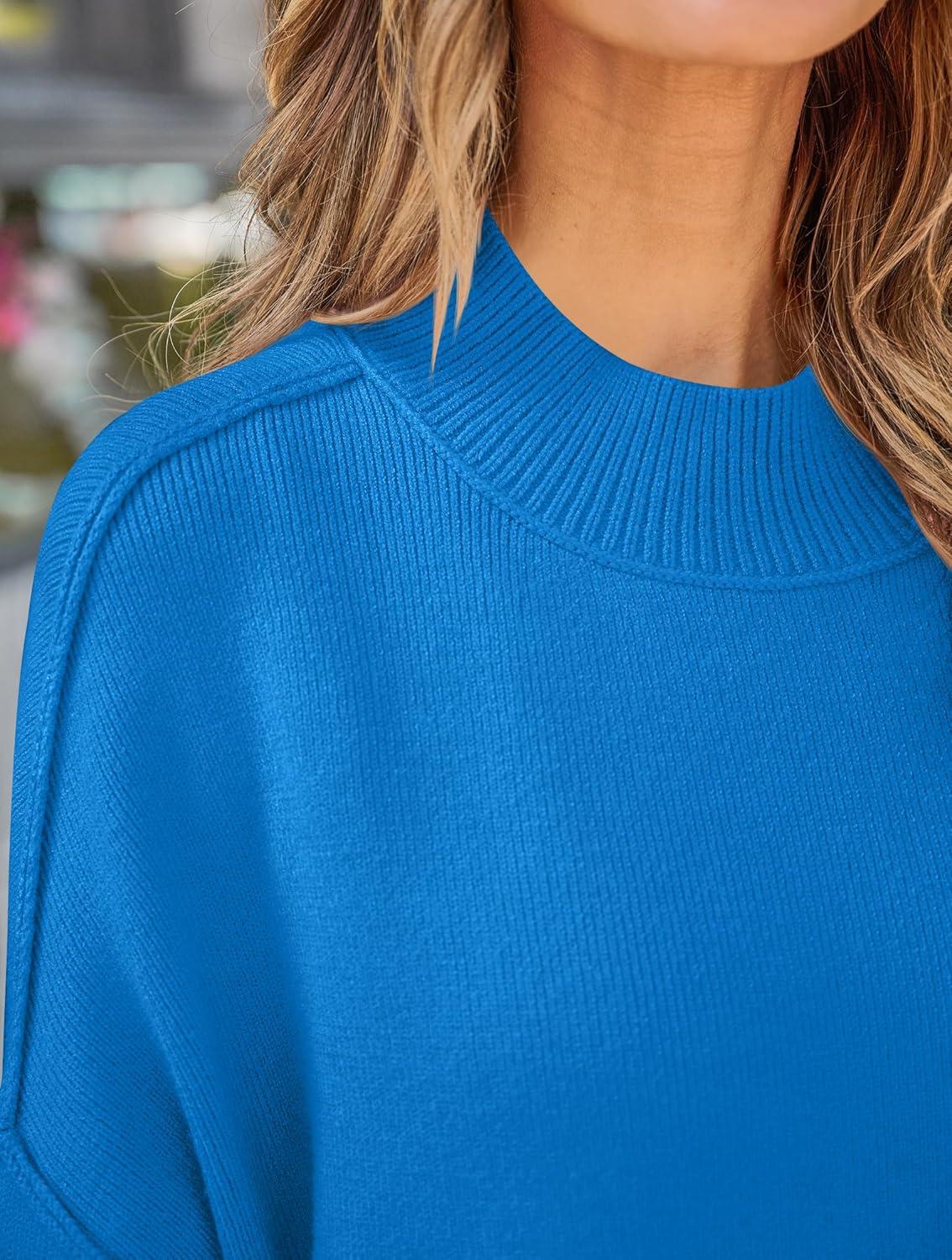 ZESICA Women's Fall 2025 Casual Long Sleeve Crew Neck Side Slit Oversized Ribbed Knit Pullover Sweater Tops(Brightblue)