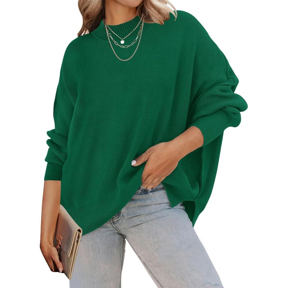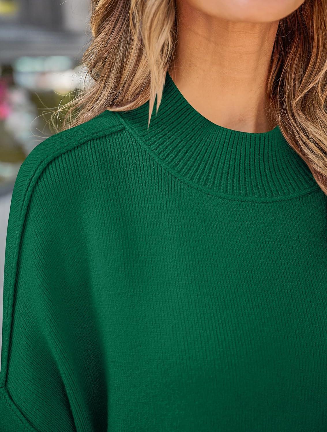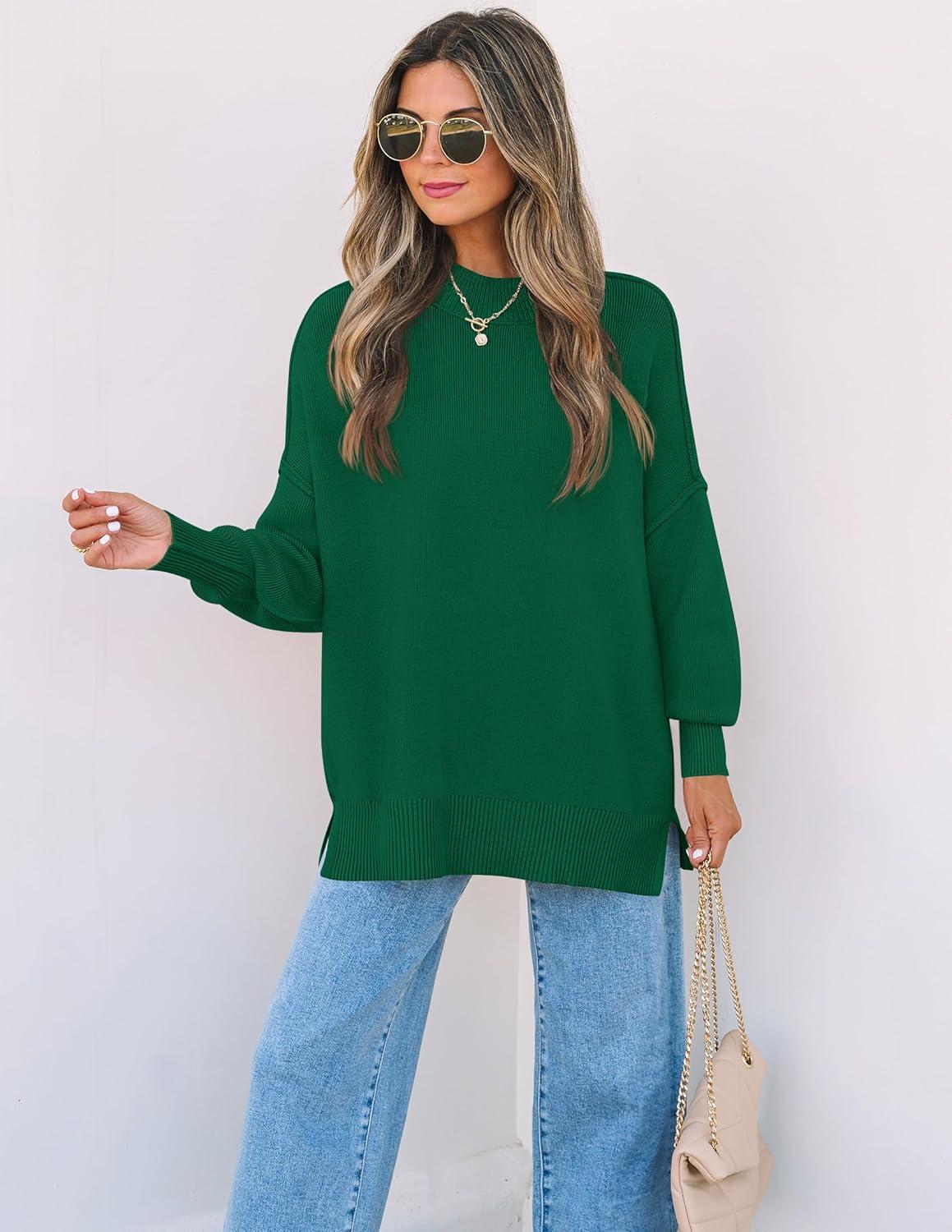 ZESICA Women’s Fall 2025 Casual Long Sleeve Crew Neck Side Slit Oversized Ribbed Knit Pullover Sweater Tops(Darkgreen)